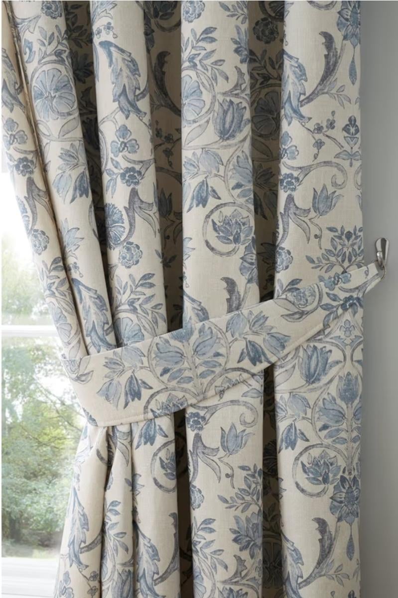 I live in an old cottage and bought these curtains because I love the pattern and they fit the aesthetic. They're a sort of off-white (the picture looks cream but they're almost greyish in real life) and varying shades of blue. Wondering what bedclothes to pair with them? Plain blue is a bit boring, white clashes and another pattern feels like too much. Any ideas?!