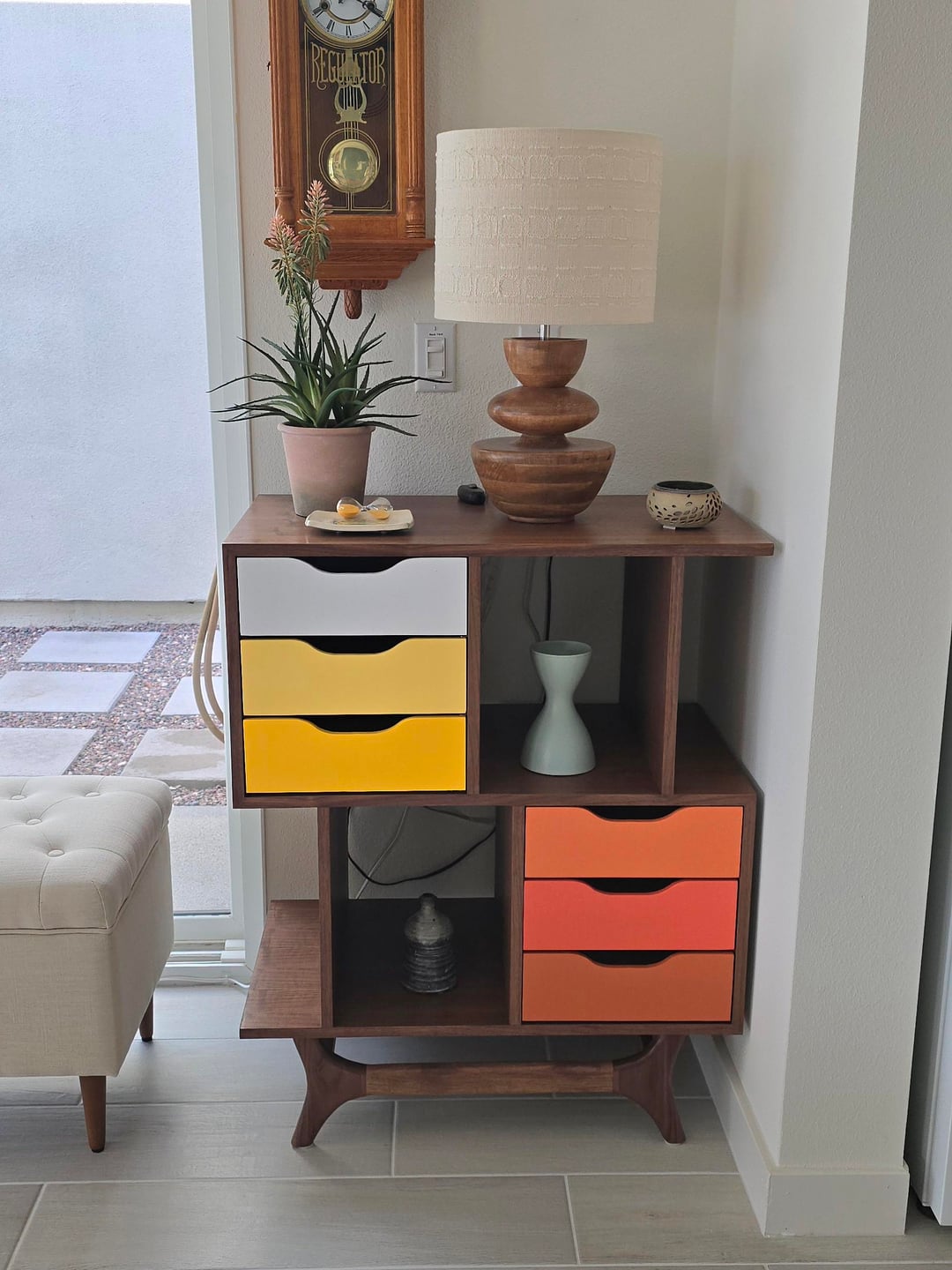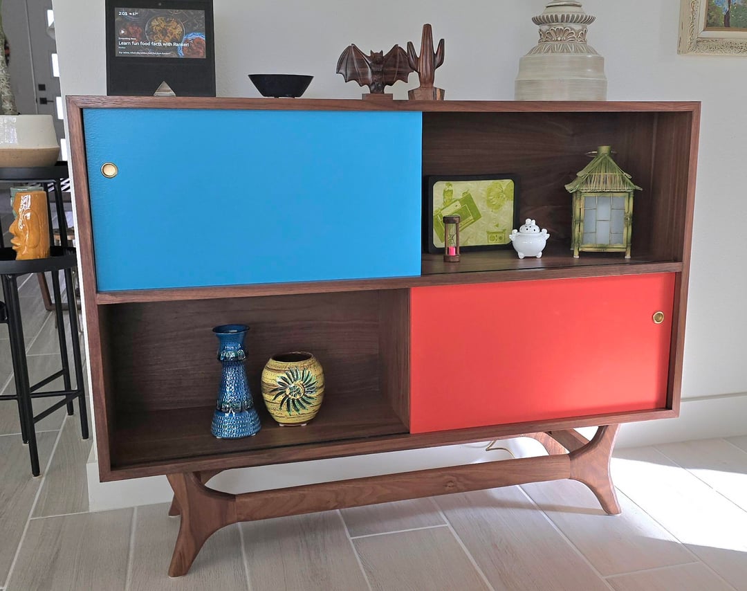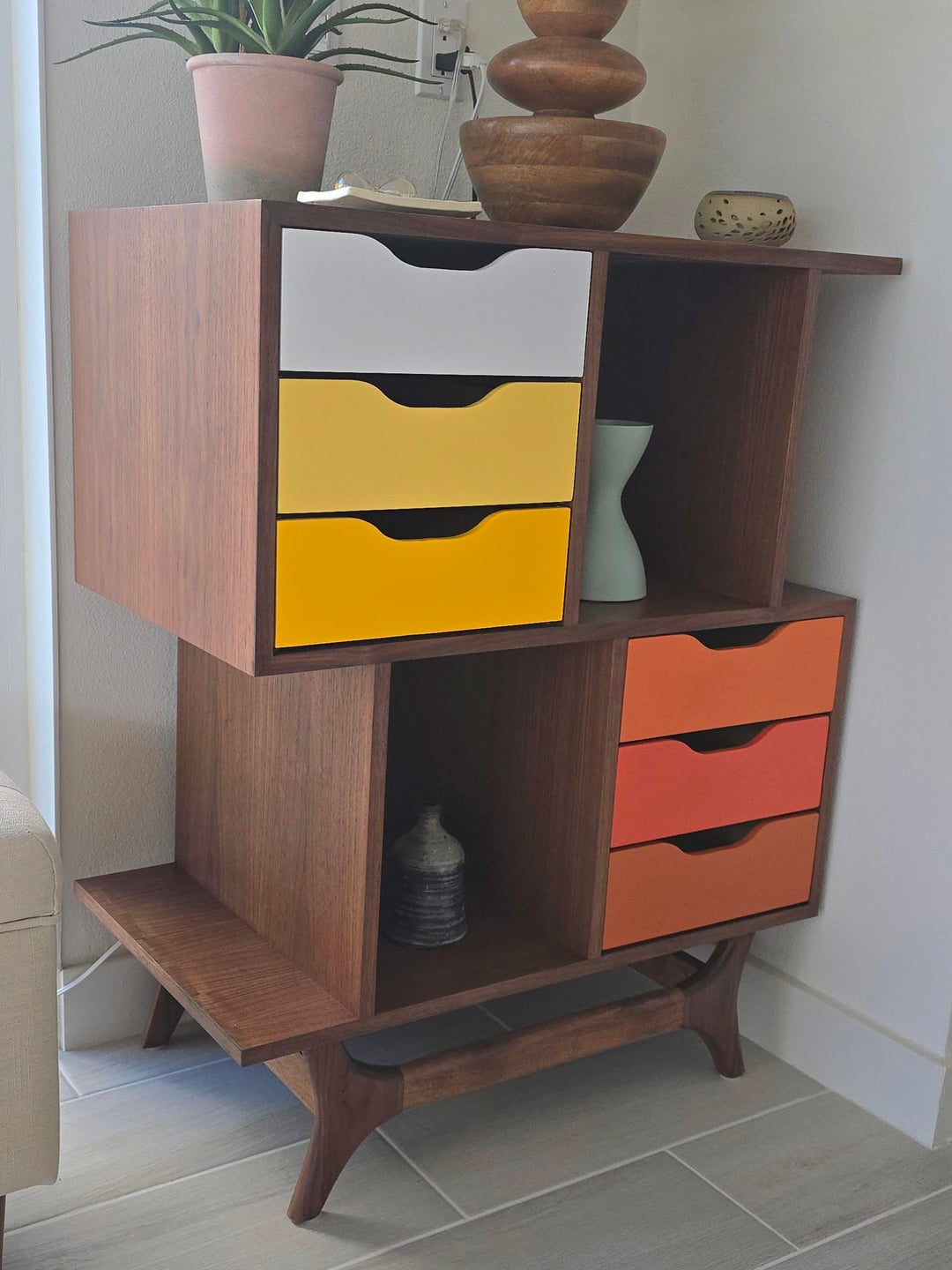 3 new custom furniture piece. All walnut. 2 cabinets & a bench. The house interior is almost all a mix of vintage Scandinavian & custom mid century style furnishings. I customized the cabinet legs with my signature “H” style legs as opposed to a straight tapered peg style leg. How do they look?