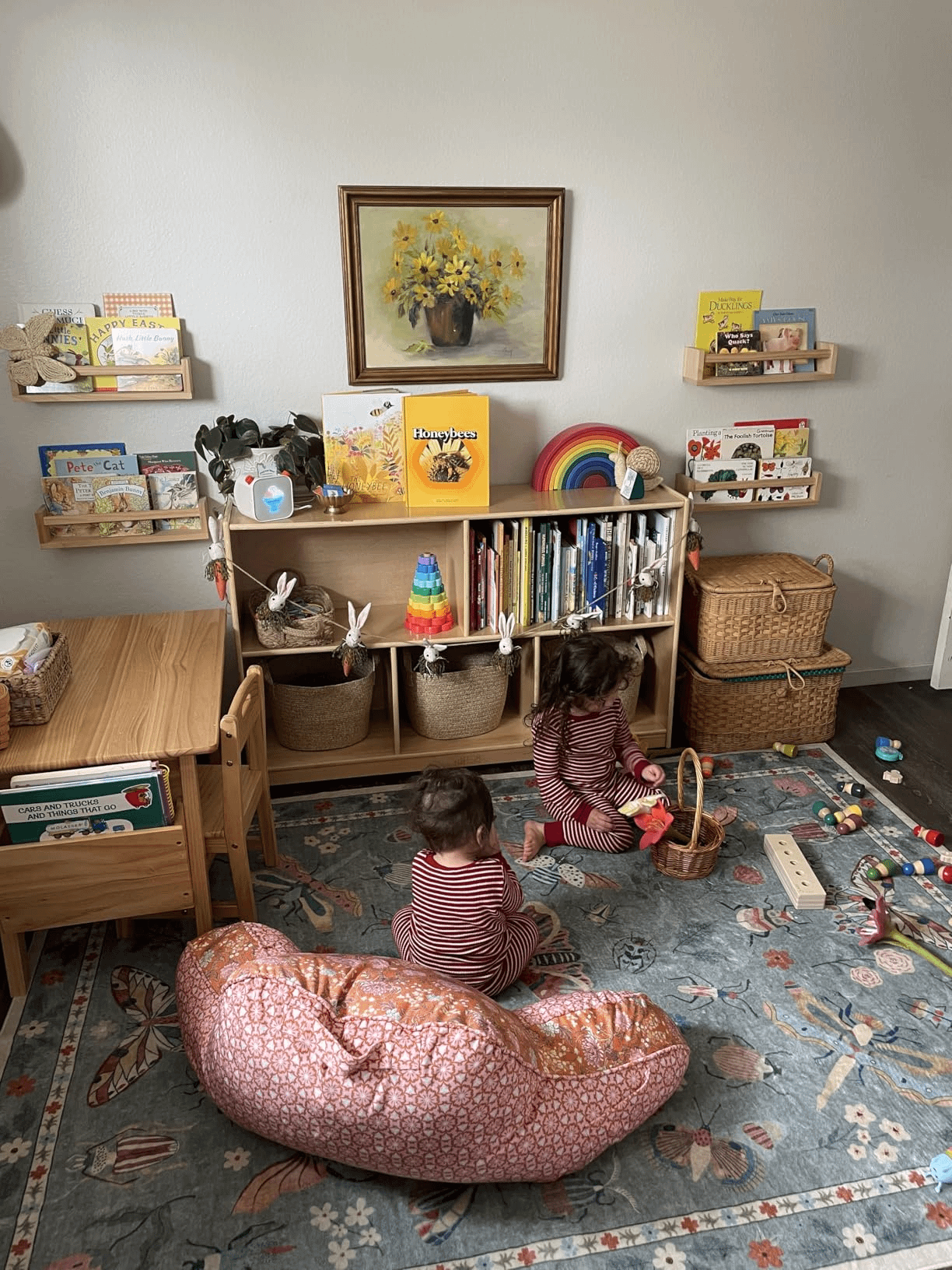 I was going for a cozy, nature feel. The bunny details and the flower painting are my favorite, and the insect rug is from lahome. The kids love it, and the whole family likes hanging out here.by RevolutionaryArea747 home and gardenhome decoratinghome decorating ideas 3 Comments Altruistic_Fun3091 2 months ago Looks like the perfect, cozy kids’ space. Obviously, can’t tell from the photo, but soft rubber mats under the rug for more comfort might be an idea. bigkbearhugs 2 months ago It reminds me of a daycare or a preschool classroom! Looks like a fun spot for the kids to learn and play 🙂 courtlwal 2 months ago Precious and whimsicalWrite A CommentYou must be logged in to post a comment.