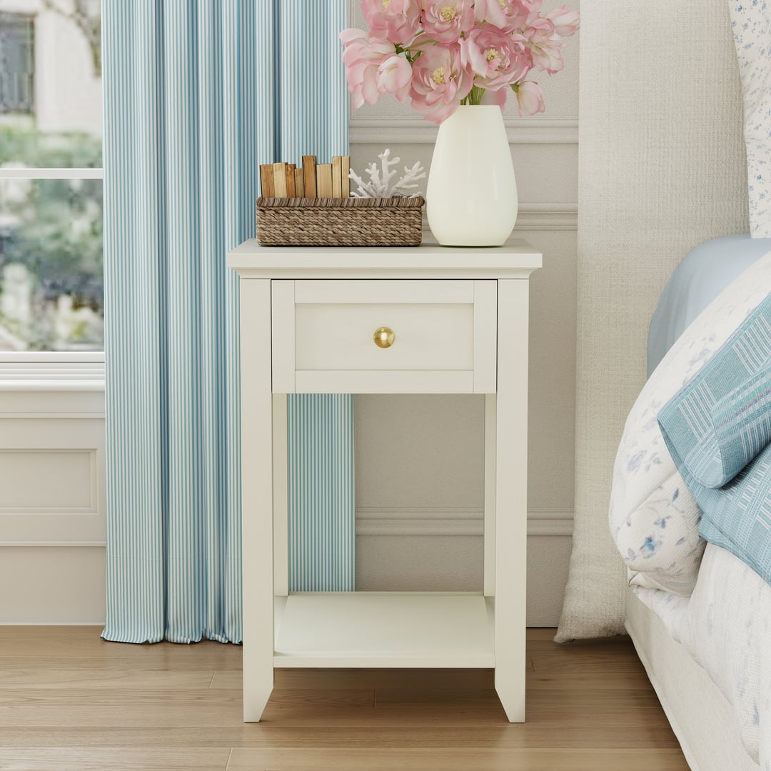 I’m redecorating my bedroom and leaning toward a clean, minimal look. The room is mostly white, so I’m trying to pick a bedside table that doesn’t feel too heavy but still looks balanced.
