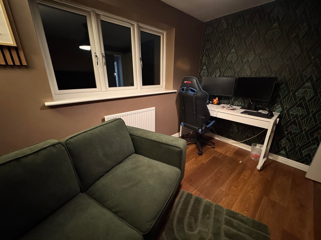 (Ignore the desk and chair its being replaced with dark wood and black metal options in time)