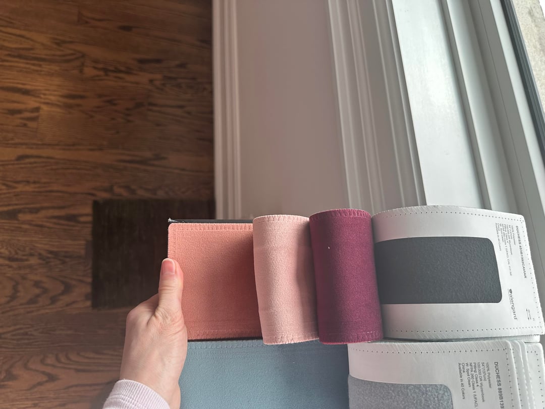 I’m torn between two colours from alandel fabric. One is Cabernet and the other blush