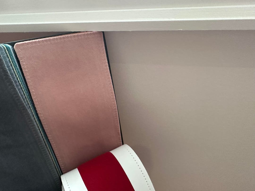 I feel like the cabernet is too dark for your space. It feels like it’d be heavy, drowning out other colors. The blush is nice. I also liked the blue, since I’m a blue fan in general, but it also sounds like the blush will work well with your existing colors
