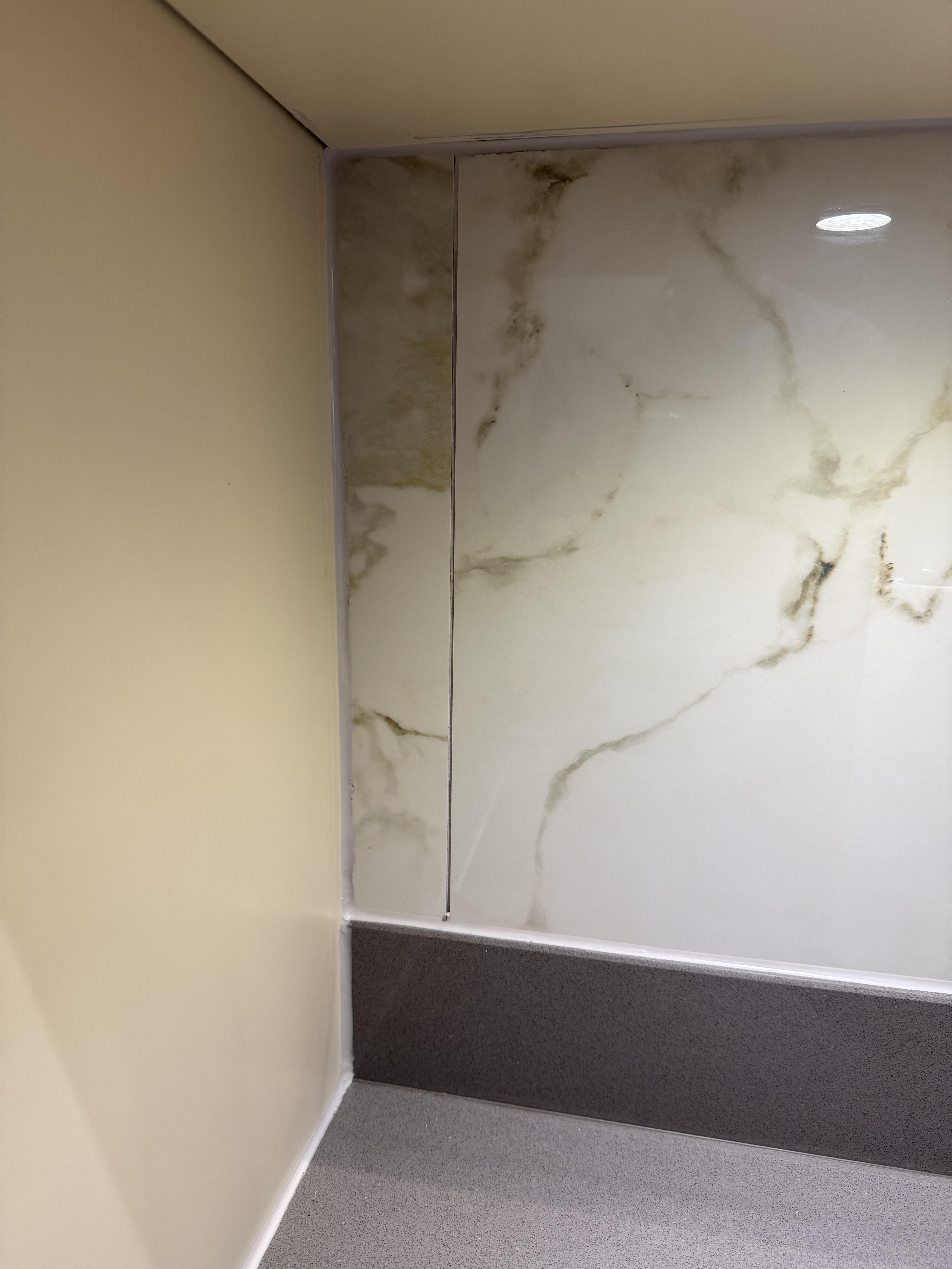 Are you worried about the work not being done well or the piece of the slab/tile that’s darker than the rest? Neither thing looks all that great, but it would be helpful to understand your complaint.