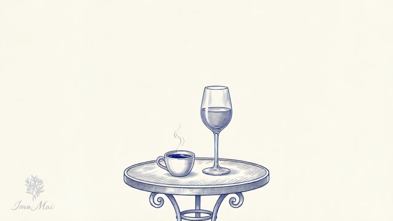 A calm café moment with coffee or wine on a quiet table.