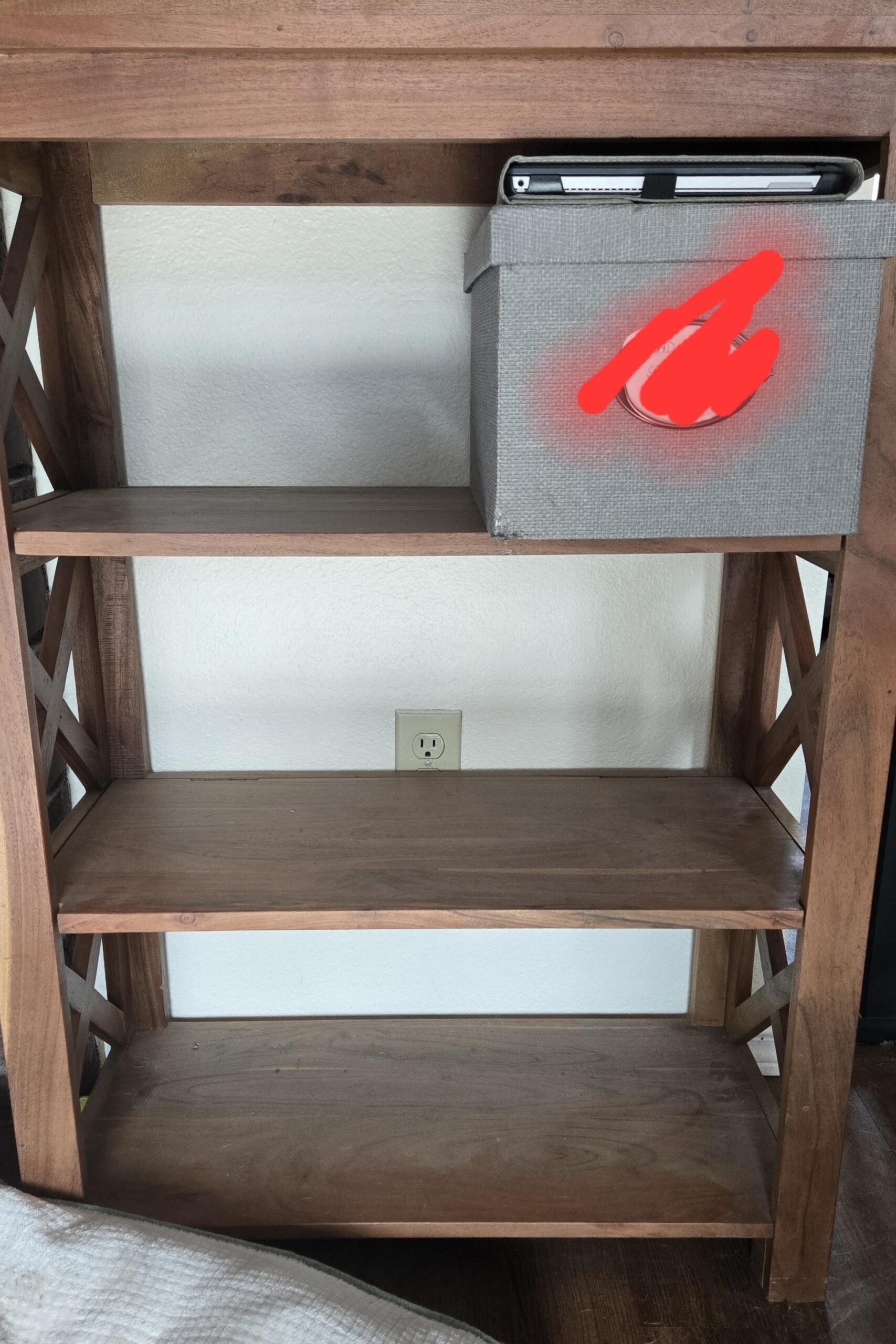 Our puppy has discovered the great joy of taking our ikea storage boxes off these (9hx22.5lx13d ) shelves and attempting to devour the contents (batteries, cables, headphones, misc cords, old cds/dvds etc). We need another option, maybe something latching or locking – thats more difficult for him to open, but I dont want home depot husky boxes in our living room. Any ideas? Our current colors are wood tones, dark red brick, light cream and some black (the Grey didnt match). No temu style places please. Us based.