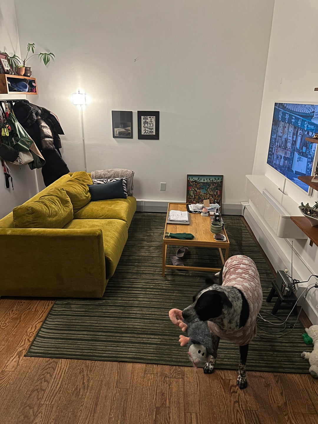 im planning to change the coffee table to a slimmer bench style because theres not a lot of room to walk. it will be black.