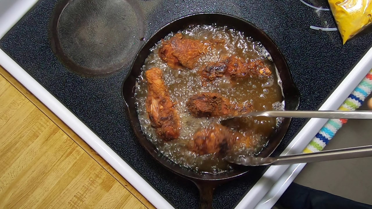 Marinate your chicken overnight in a jumbo ziploc bag with French’s mustard! When ready to deep fry, bread the chicken completely in a seasoned flour! I use Old Bay seasoning, garlic salt, and fresh ground pepper! Using a black cast iron skillet heat vegetable oil to a constant temperature. All ranges differ I start with 6 then adjust from there to not overheat! The best chicken ever make you wanna slap yo momma!#Mustardchicken #Bestchickenever