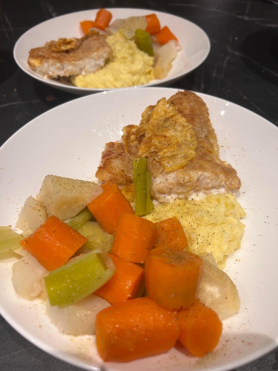 Poisson, purée et légumes vapeur . Une salade simple en entrée .by ourse_brune Bonne BouffeCuisine d'ici et d'ailleursWrite A CommentYou must be logged in to post a comment.
