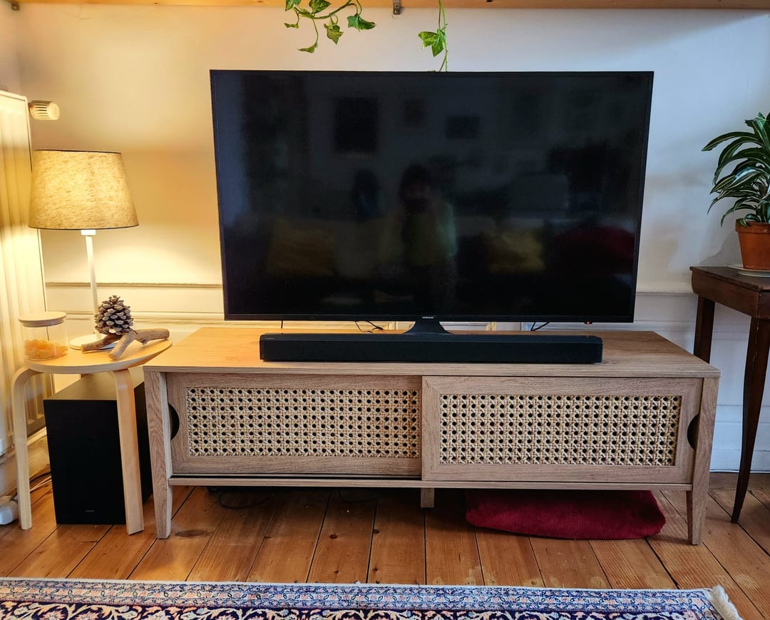 I like your TV stand, I don’t see any reason to change it, except if you want more storage.