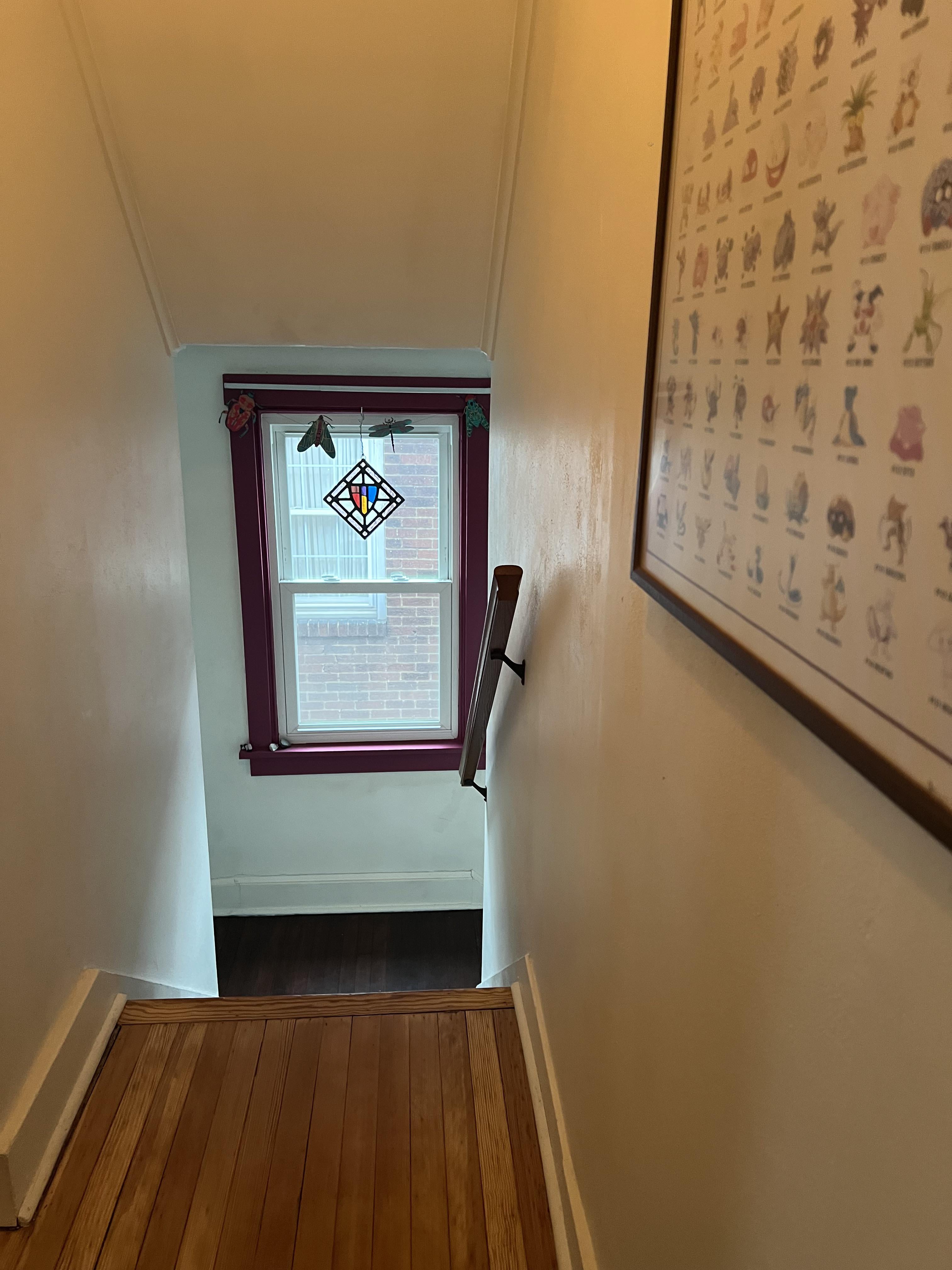 What are some cute privacy options for this window? This is the view from our only bathroom, but we sometimes have to leave the door open to keep an eye on baby bouncer or bassinet we leave in hallway while showering.