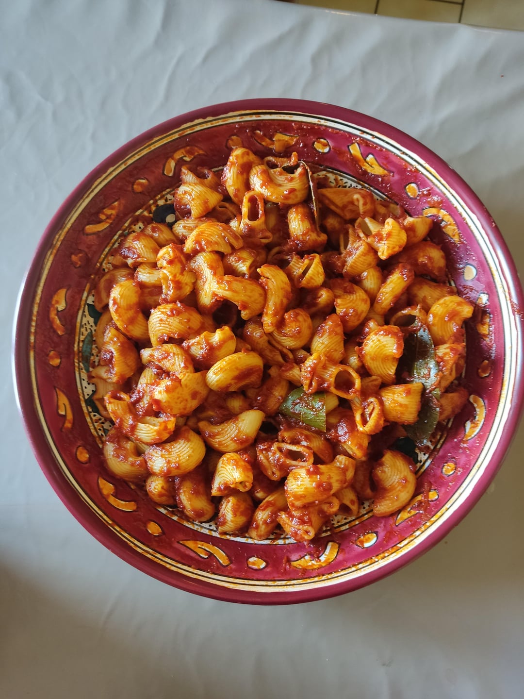 Principle: Fry tomato paste in olive oil and sprinkle with garlic, bay leaves, and a teaspoon of saffron. Continue cooking, stirring the mixture and preventing it from sticking to the bottom of the pan or burning. Add a little water and continue cooking over low heat until the sauce becomes darker and more concentrated. Season with salt and pepper. Note: Fava beans cooked in water with salt and cumin can be added to the pasta at the end as a meat substitute. Enjoy! 😊