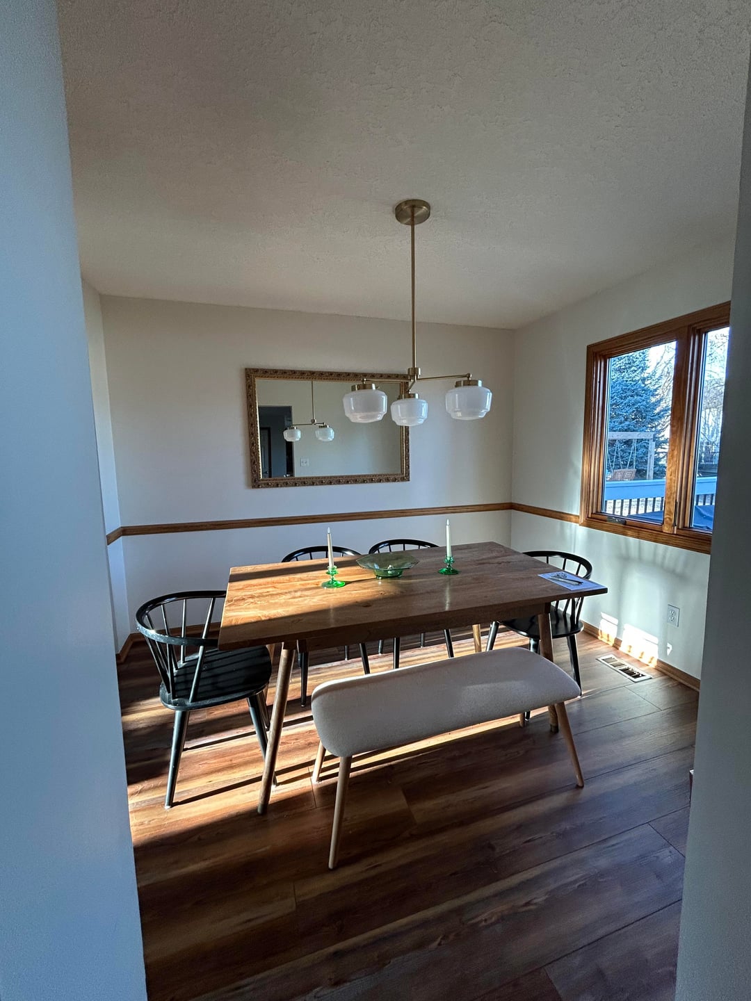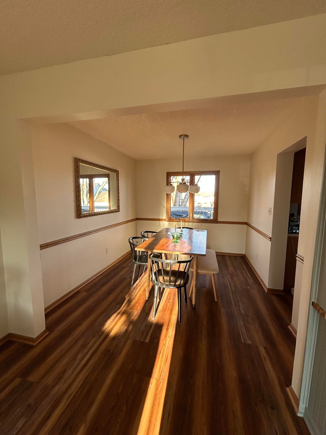 My dining room is so boring. I was originally thinking wallpaper on top and paint below the chair rail, but not sure if keeping the chair rail will make it look too dated?