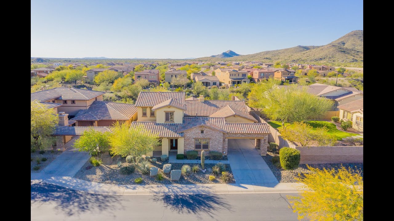 Located in the gated Vistancia community of Aria this exceptional home is situated to take advantage of the open wash behind the home and the beautiful mountain views. With 5 bedrooms, 4 baths and 4,030 feet this home dazzles. Outstanding curb appeal with eye catching stone work, lush desert landscaping, homey front porch and a unique porte cochere leading to a double garage and a single side entrance garage. Once inside the home you will immediately notice the inviting slate flooring, soothing neutral colors and great ceiling detail. A den with a double door entrance for privacy is nestled close to the front door. Very nice arrangement of the public spaces in this home with a large great room anchored by a fireplace with French doors on either side of the room leading to both the patio and a private courtyard. Large kitchen featuring granite counter tops, rich cabinets, stainless appliances, two separate sinks, very workable island, seating counter overlooking great room, fantastic breakfast room with loads of natural light and there is a butlers pantry that leads you to the warm and inviting formal dining room! Double doors lead to the first floor master bedroom retreat where you will find nice bright windows and an exceptional en suite bath featuring walk in shower with tile detail, soaking tub, Dual vanities, private toilet and a nice sized walk in closet. 4 additional bedrooms and an outstanding loft area with built in cabinets complete the interior of this well appointed home.uopStep outside and you will find a great covered patio with built in BBQ complete with a raised seating area, beautiful pool and spa with rock accents, a pergola that’s perfect for al fresco dining and a great view fence so you can enjoy the stunning night sky!