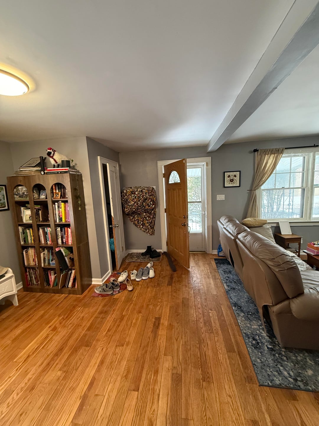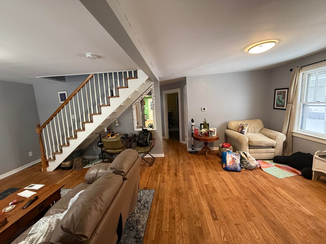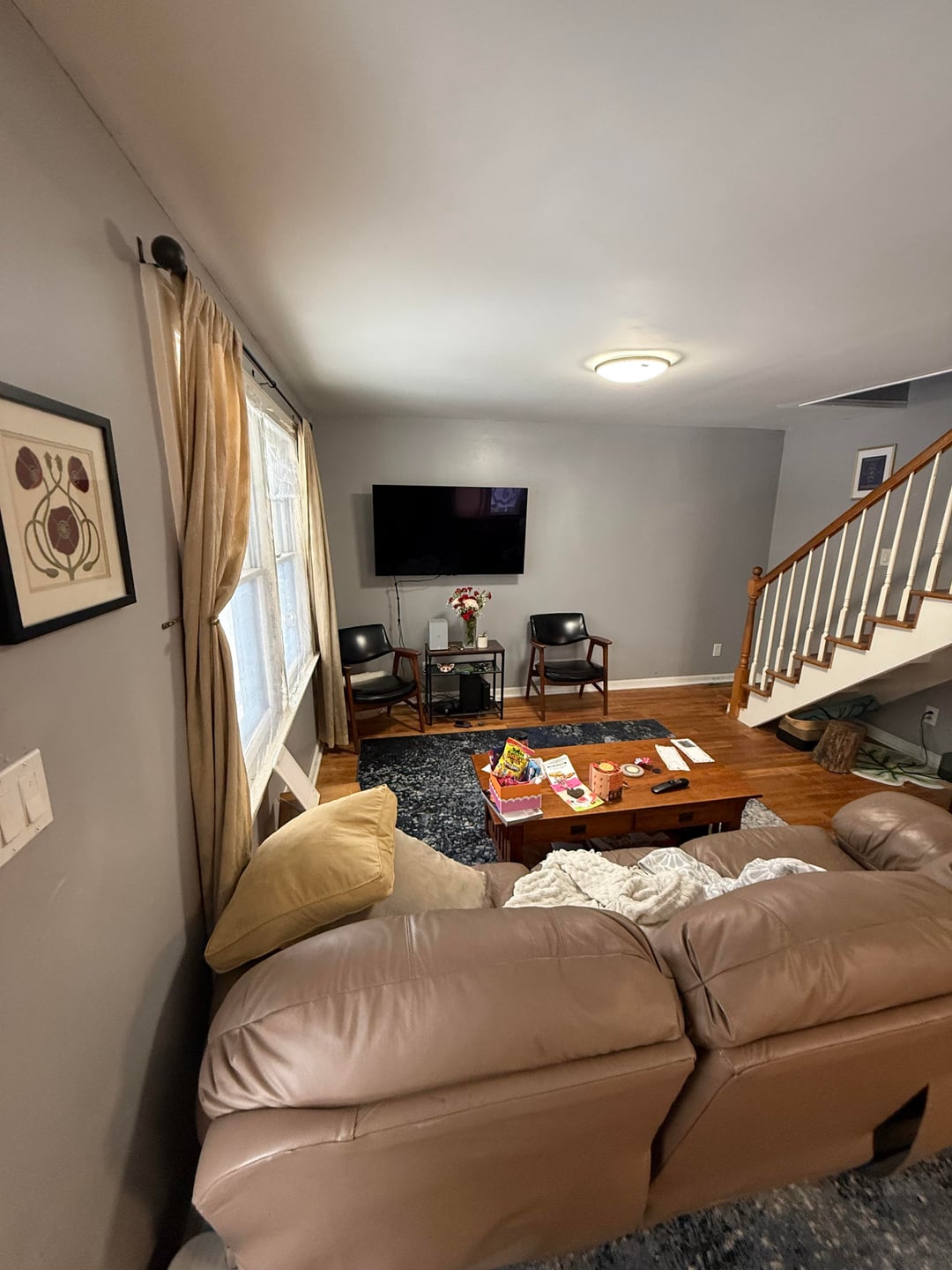 I need assistance with A) choosing a color scheme and B) making these “two” areas seem more cohesive. I would like to utilize all the space, even under the stairs if possible. I’m having difficulty with seating making sense and the tv not being too far away. Sorry about the mess!