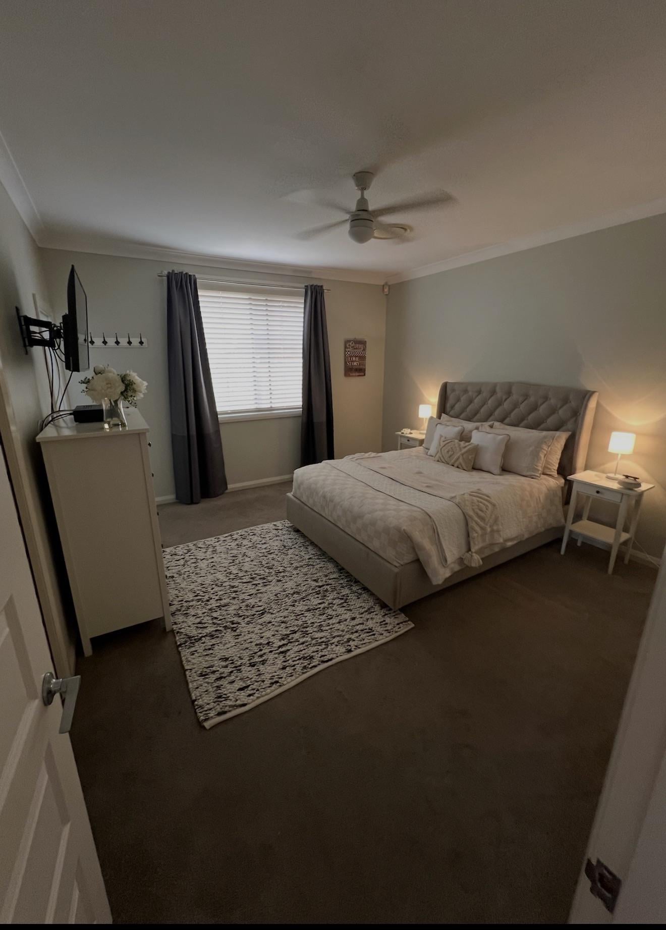 This is the master bedroom as it is currently styled by the tenants. None of the furniture will stay so we’ll have to completely furnish the room from the beginning.