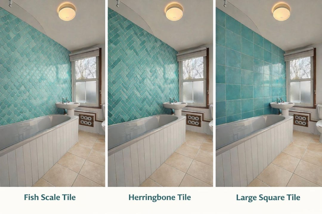 Though nice, the fish scale is giving mermaid vibes which you might not like after a while, unless this is a child’s bath. 🧜🏻‍♀️ The herringbone is more sophisticated and timeless.
