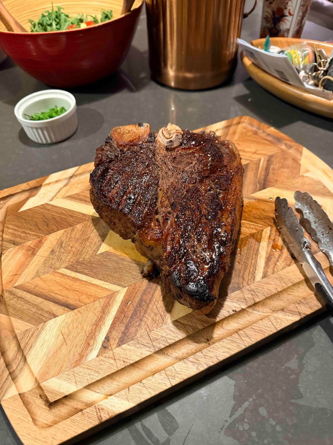 Paired with a 2.5 inch, 50 day dry aged porterhouse. A more concentrated wine may have been better, but it was a great Valentine Day’s dinner nonetheless.