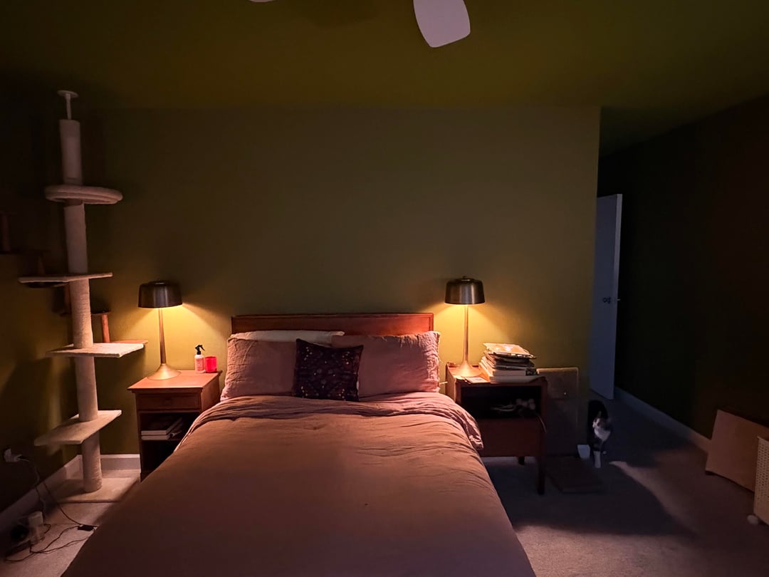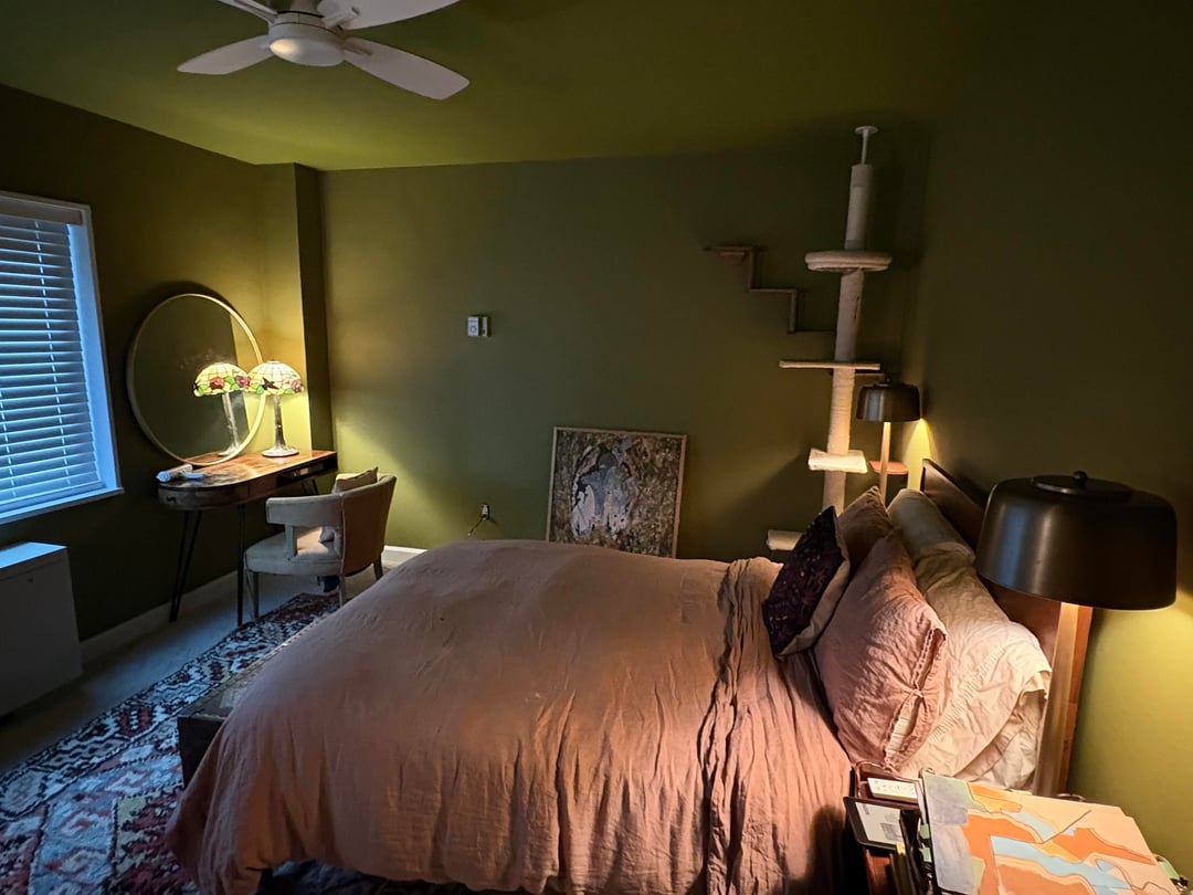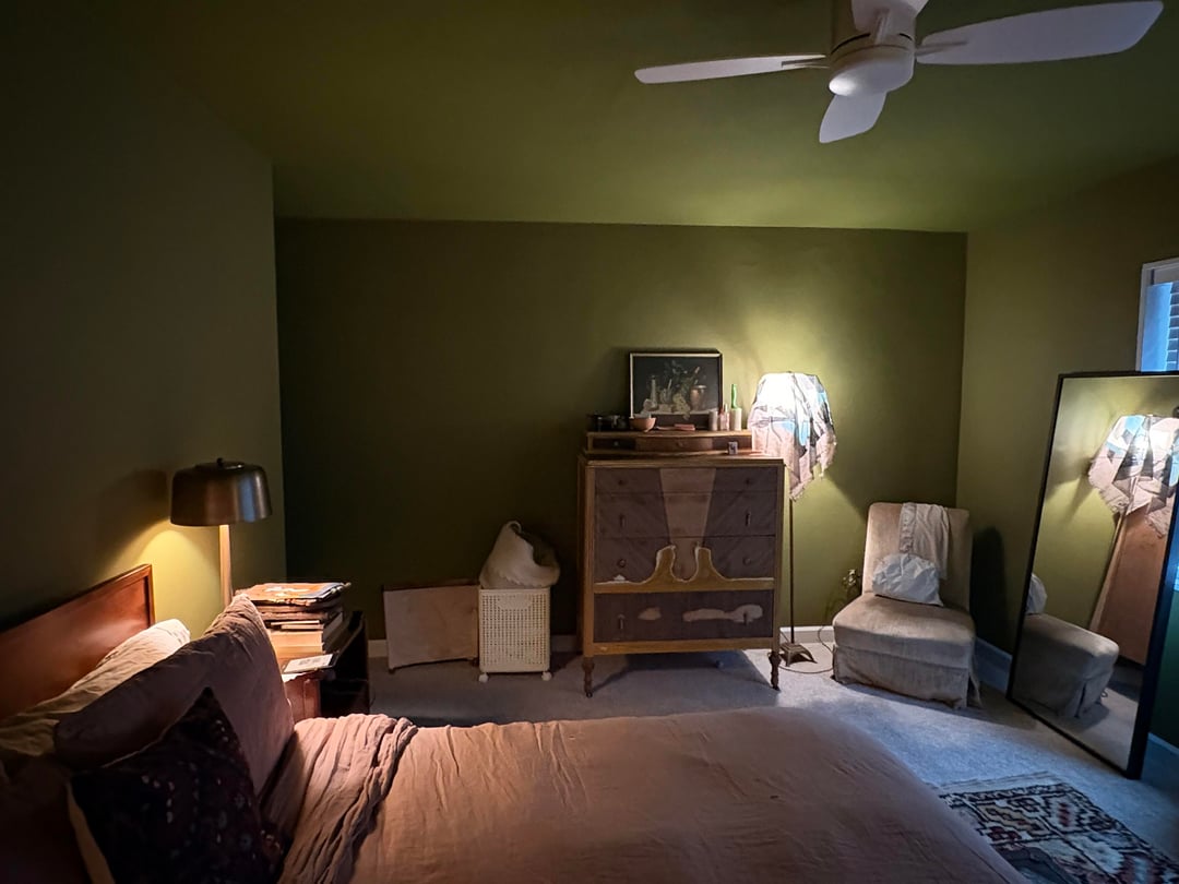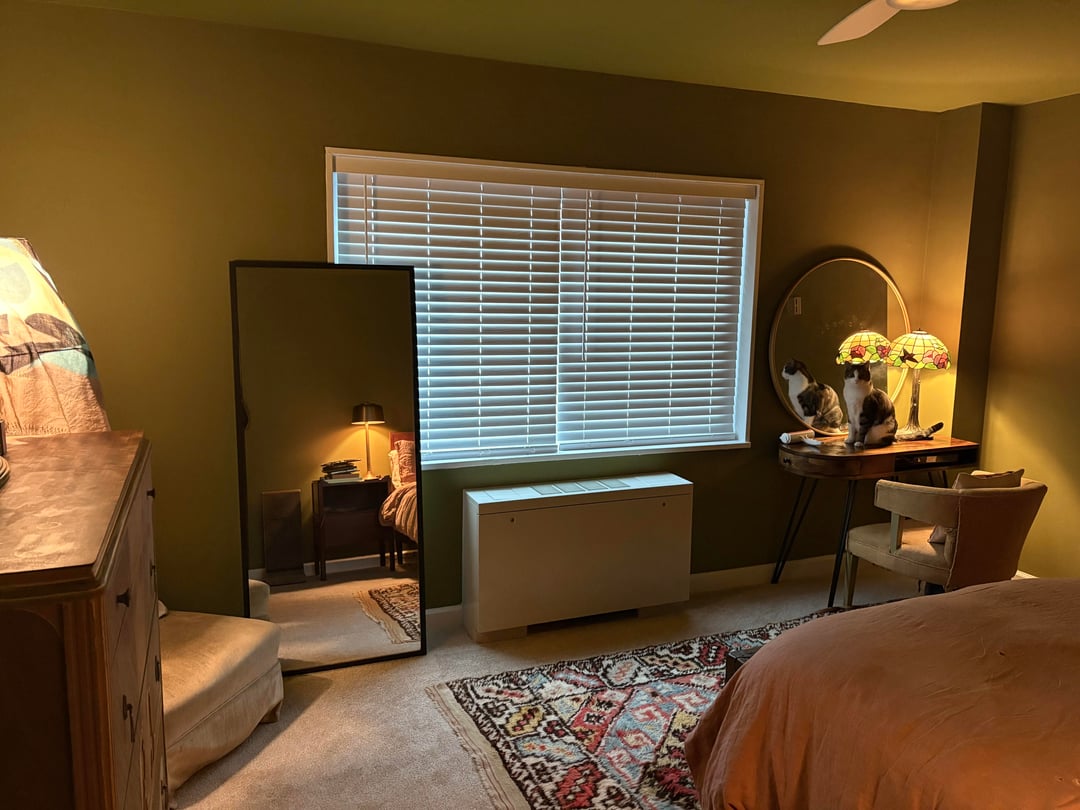 Not planning on changing out any furniture, and I have a new linen duvet cover coming that’s more of a terracotta/cinnamon color than the current threadbare pinky-taupe.
