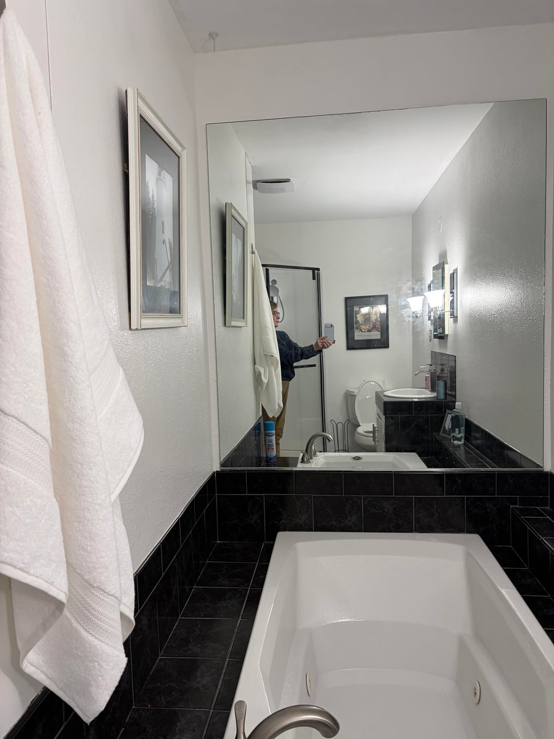 Hi. We recently purchased a home and the master bath has this extremely large mirror I’d like to remove the mirror and have a large window installed ( home is on Lake Huron and the window would look right out to the beach). Since we bought the home to strictly vrbo my husband won’t put in a window or take it down. Any suggestions on how to make it a bit more decor friendly??