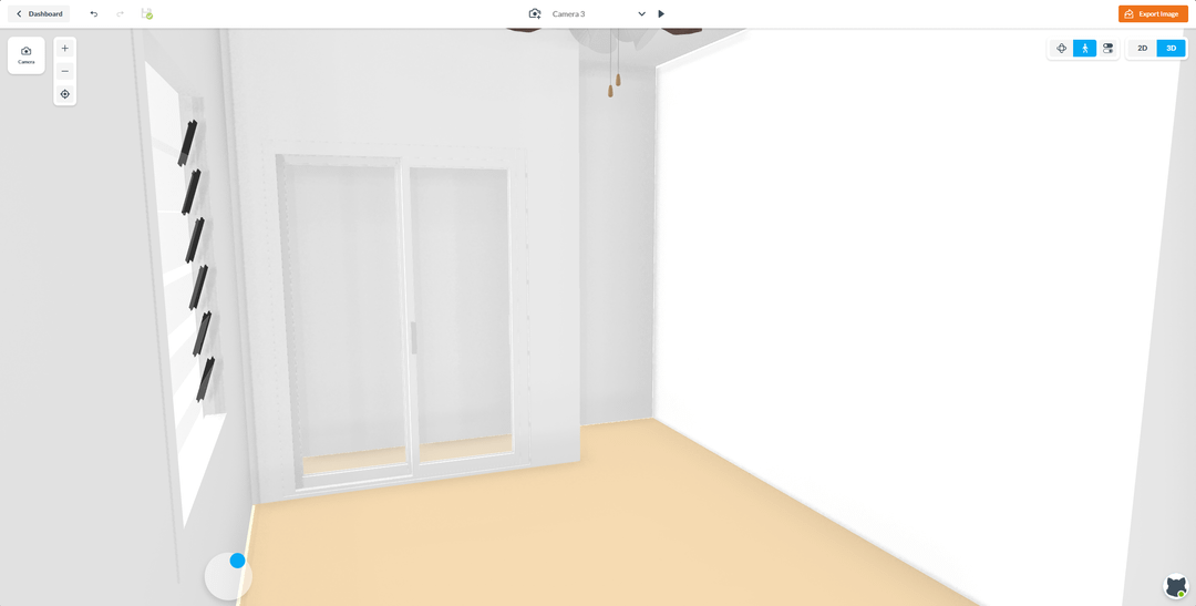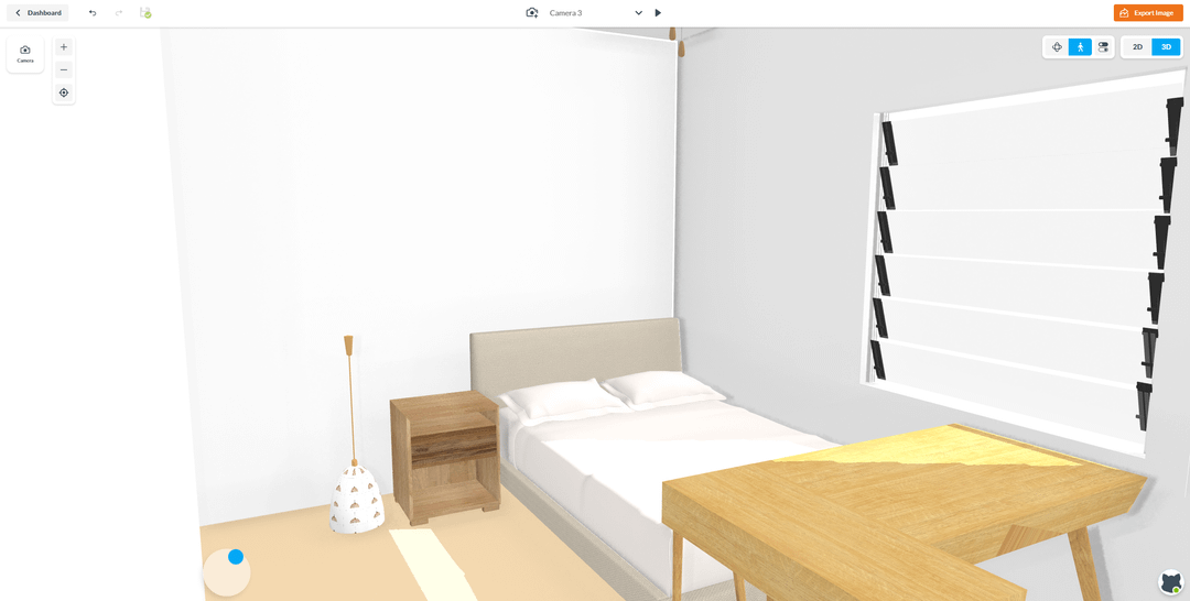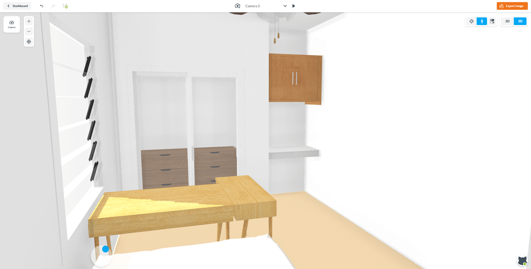 In the 3D model pictures, the light represents my standing fan, and the little space in the corner is built in. I won't be taking out the desk or cupboards there.
