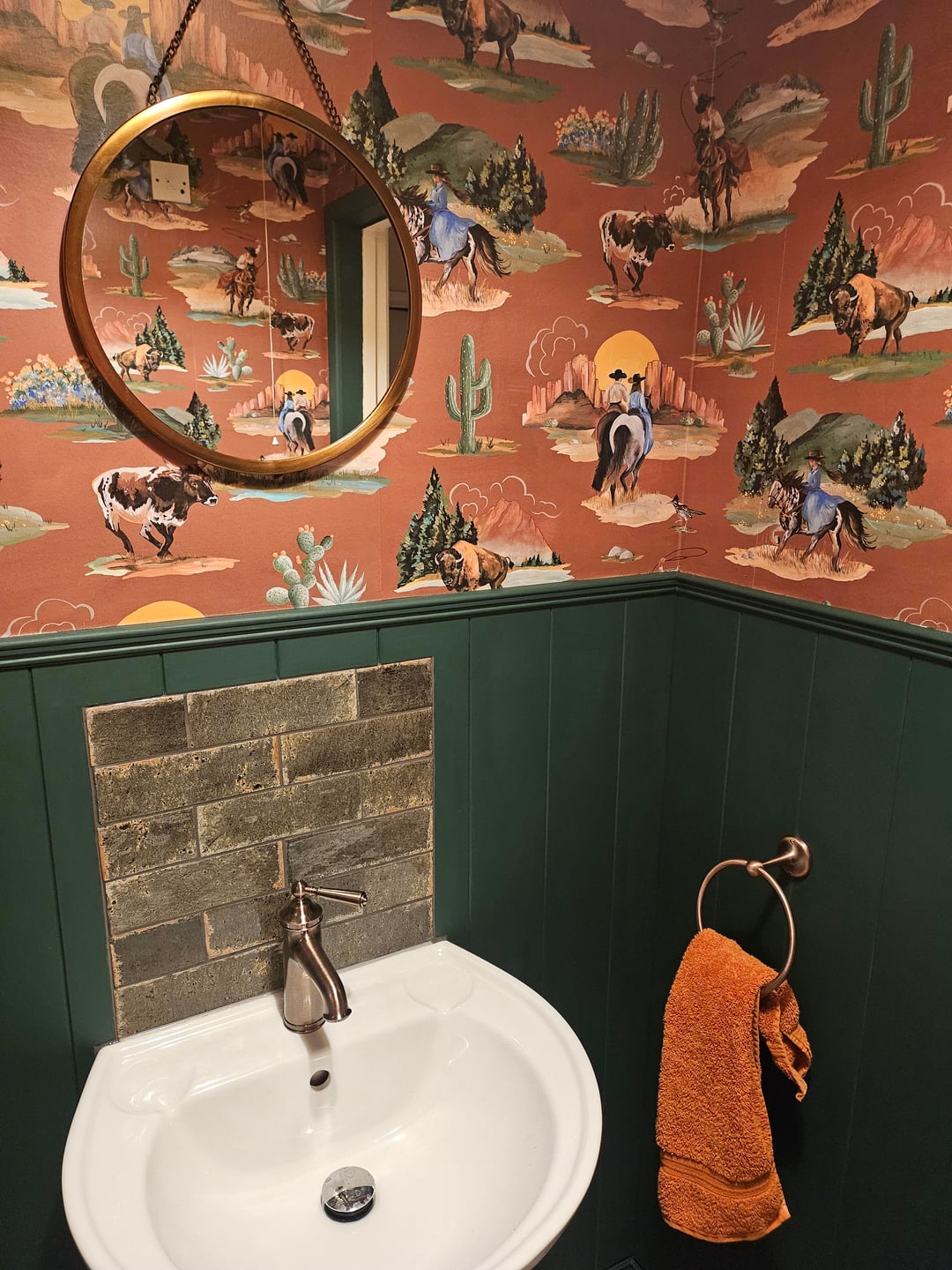 Our first full room renovation (apart from the toilet and sink). How'd we do?by KettleShmettle home and gardenhome decoratinghome decorating ideas 2 Comments skeletonmeatsuit_69 1 hour ago It’s cute! Small adjustment : the mirror is too small. Question: what’s with the brick thing behind the faucet? beingafunkynote 1 hour ago I love it! The wallpaper seams aren’t great but it’s good for a diy. Very cuteWrite A CommentYou must be logged in to post a comment.
