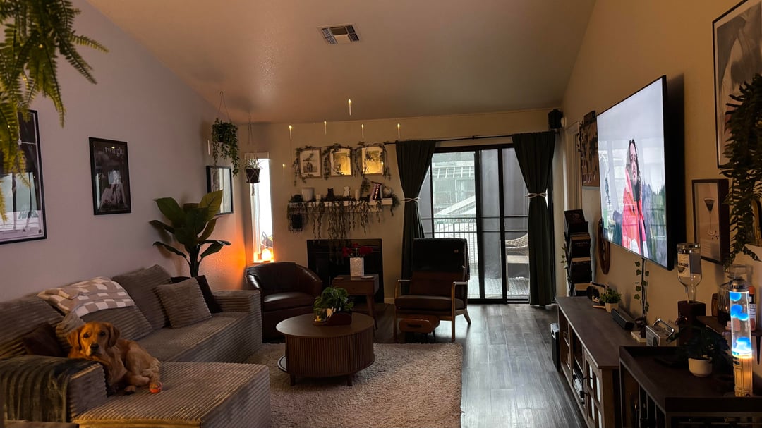 This is the wife and I’s apartment with a mixture of both of our decorating styles. Although I wouldn’t specify most as one or the other because we have similar tastes. That’s our tuxedo cat in the floor picture because his home is part of the decor lol