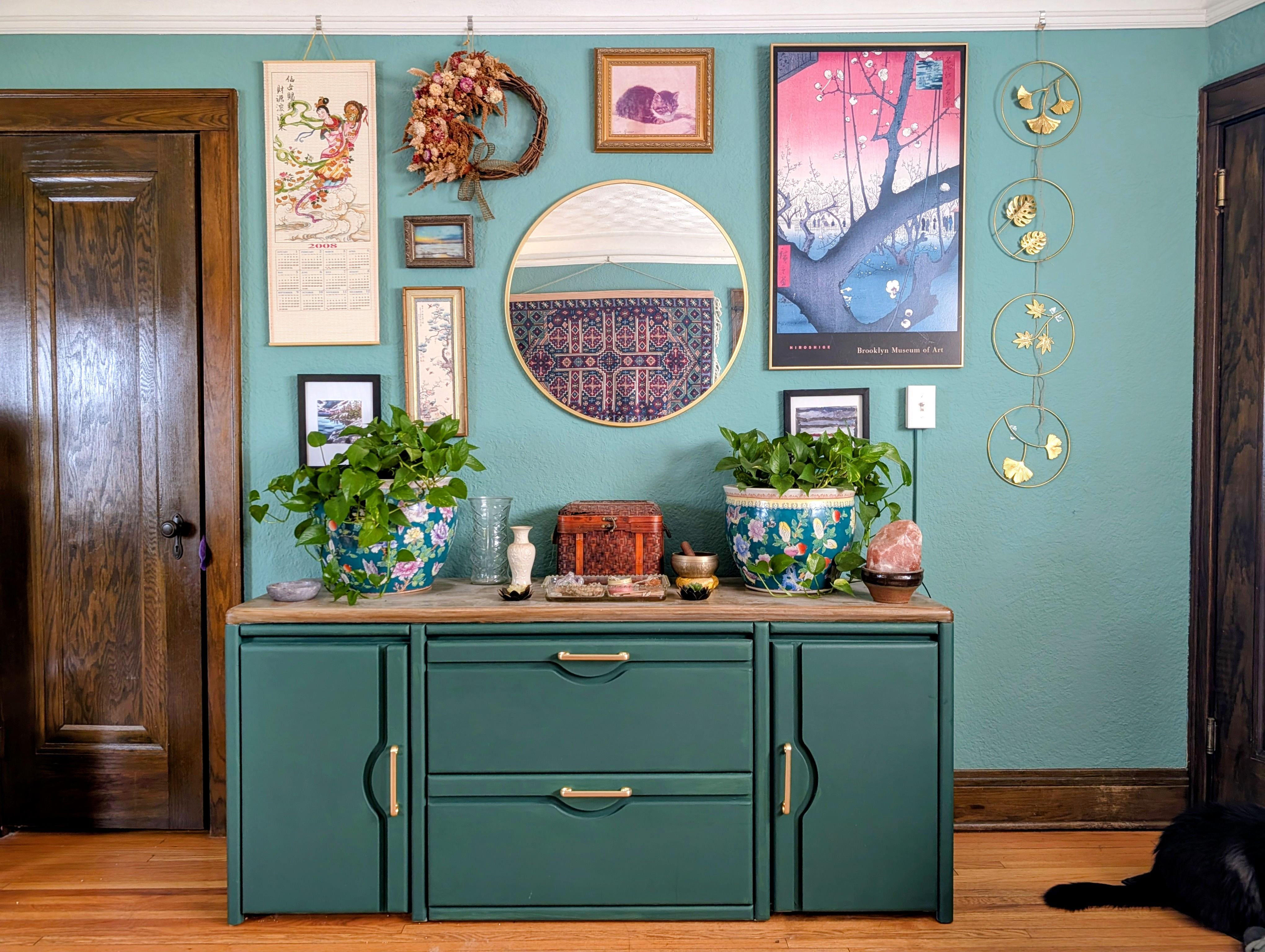 I love my maximalist wallby ShimmersInRealLife home and gardenhome decoratinghome decorating ideas 2 Comments Next-Yogurt8878 2 hours ago Verry pretty. Love the green. bubbies1308 2 hours ago Love color! But can you center the console with the round mirror?Write A CommentYou must be logged in to post a comment.