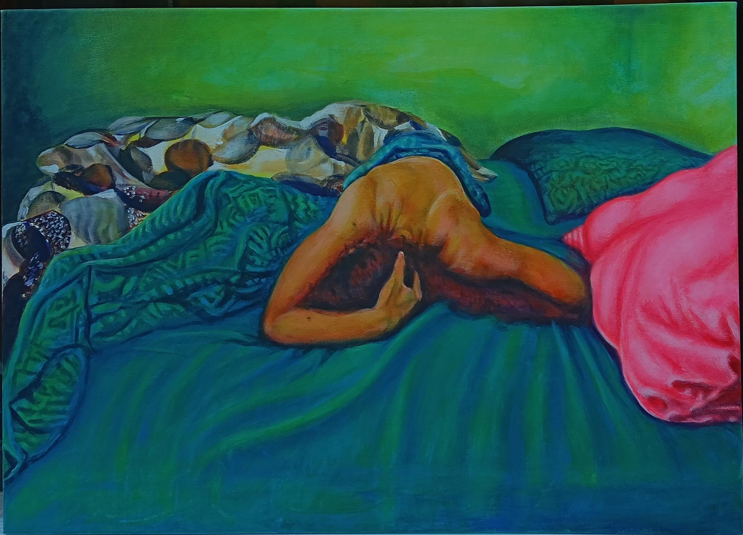 Would you hang this in your home? “Mind over mattress,” acrylic on canvas, 2026.