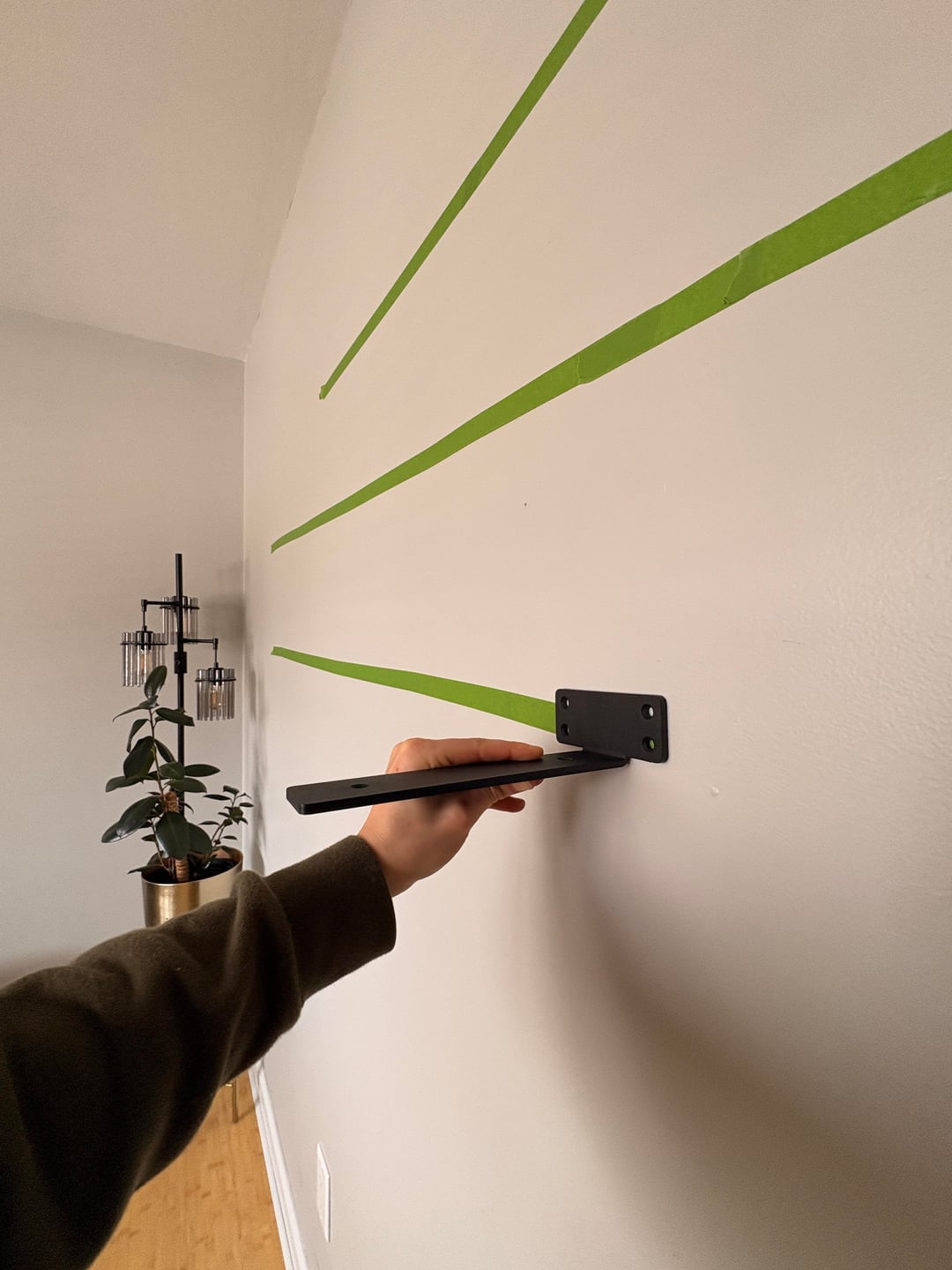 I’ve moved this tape around so much and can’t seem to get a good look. I would love a staggered shelf look. Can be overlapped and adjusted sizes. Last picture shows what the shelf will look like.