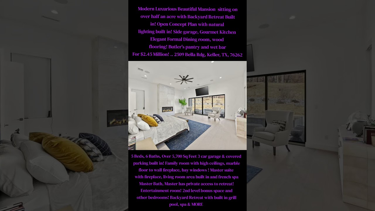 “MODERN LUXURIOUS BEAUTIFUL MANSION” That sits on over half an acre and has a private backyard retreat! 🏰🏰🏠 For $2.45 Million! … Located: 2509 Bella Rdg, Keller, TX, 76262