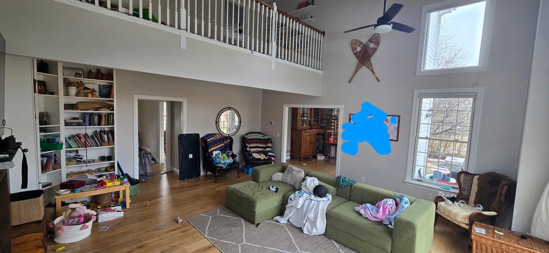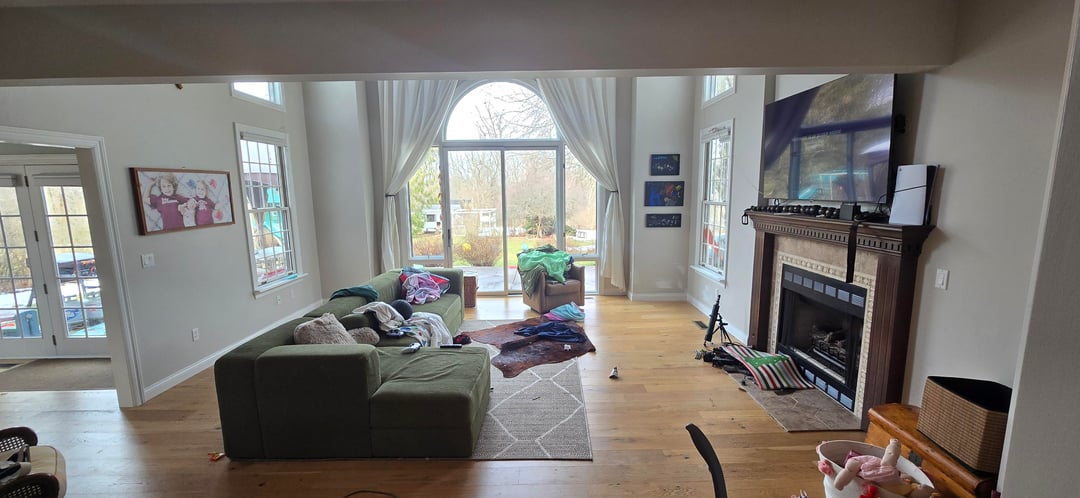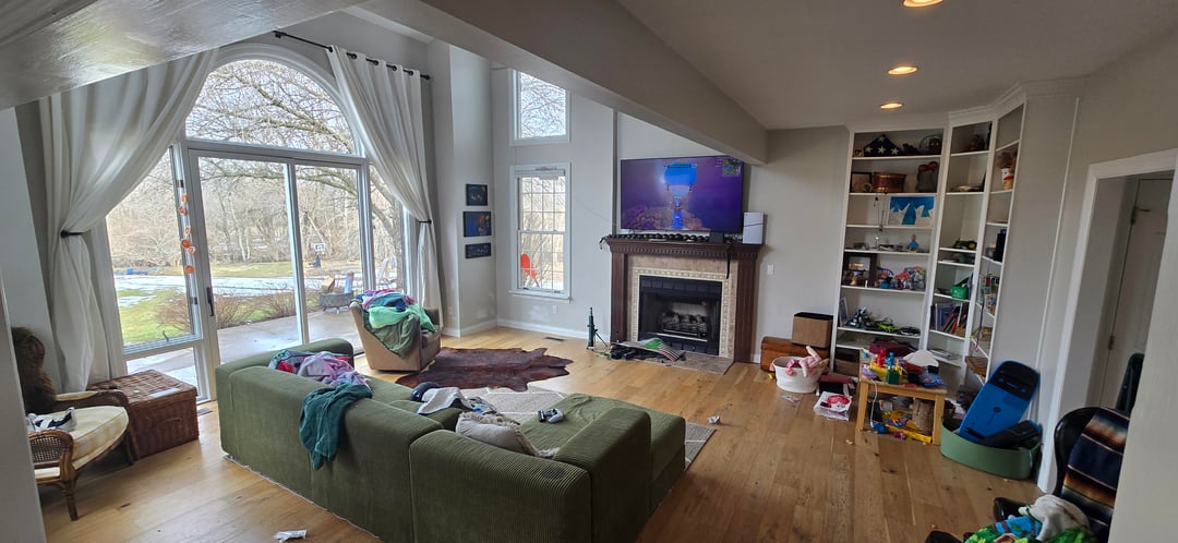 This is our main living space please suggest, layout and furniture. We have 3 kids, and entertain a good amount, we dont open the door too much.