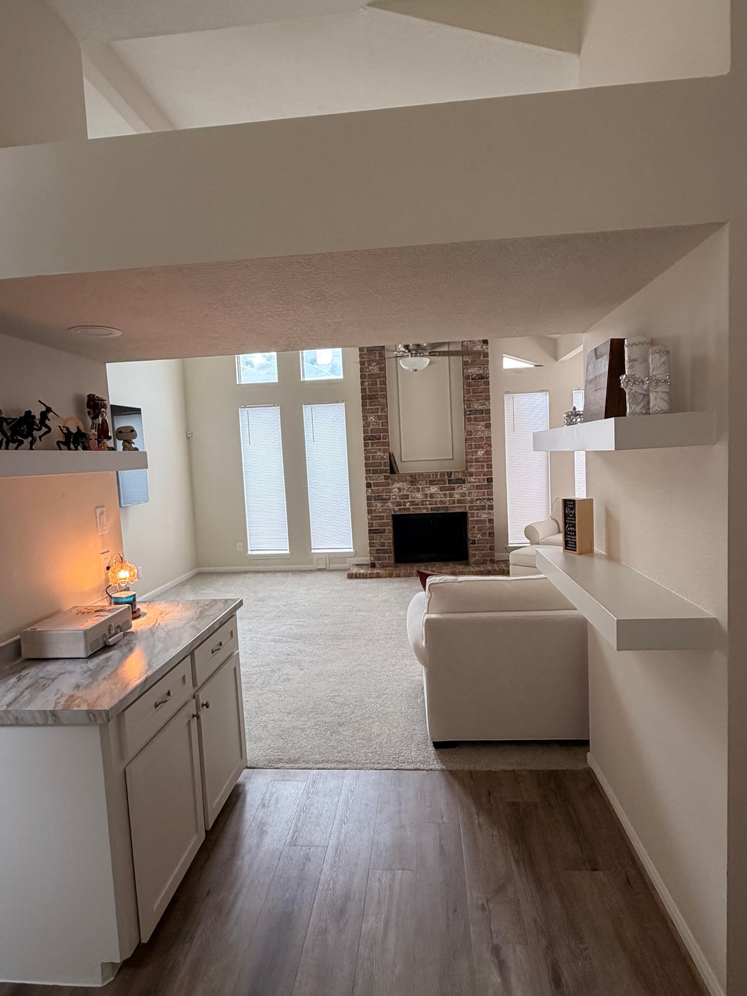 Hello everyone my wife and I have been living here for a couple of months now and now that Christmas is over and all the Christmas decorations are gone, the house feels empty. We know we need a tv stand (sorry for TV Being mounted too high) , coffee table, Curtains, and just more color in general.