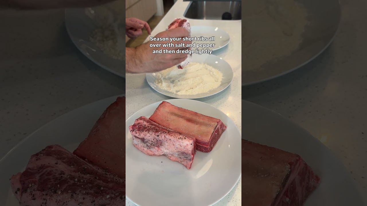 2. Dredge ribs lightly in flour. Season with salt and pepper.