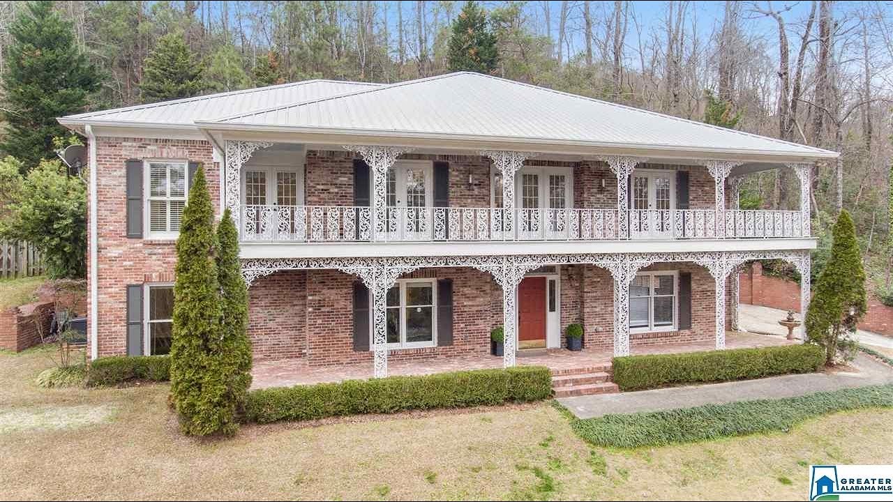 Welcome Home…You will love the New Orleans style ornamental iron balcony that overlooks your private almost acre lot. Enter into the bright 2 story foyer.Upstairs is main living space featuring dining, office, den, kitchen w/eat-in area, laundry, & master suite. The office area & the dining have French door access to the beautiful balcony. The updated kitchen features granite, stainless appliances, gas stove & Spanish tile. Den features fireplace, built-ins, wet bar & access to the private back patio. Master bedroom has hardwoods & large updated bathroom w/double vanities, granite, make-up vanity & large walk-in shower. Downstairs features 2 additional bedrooms that share a full bathroom, extra bunk room, exercise room & 2 car garage w/storage. The private stoned patio has a pergola and overlooks the professionally landscaped yard. Additional updates: Metal Roof, 2 fountains, stone wall & gas powered whole house generator. Just a short 3 min drive to HWY 31!