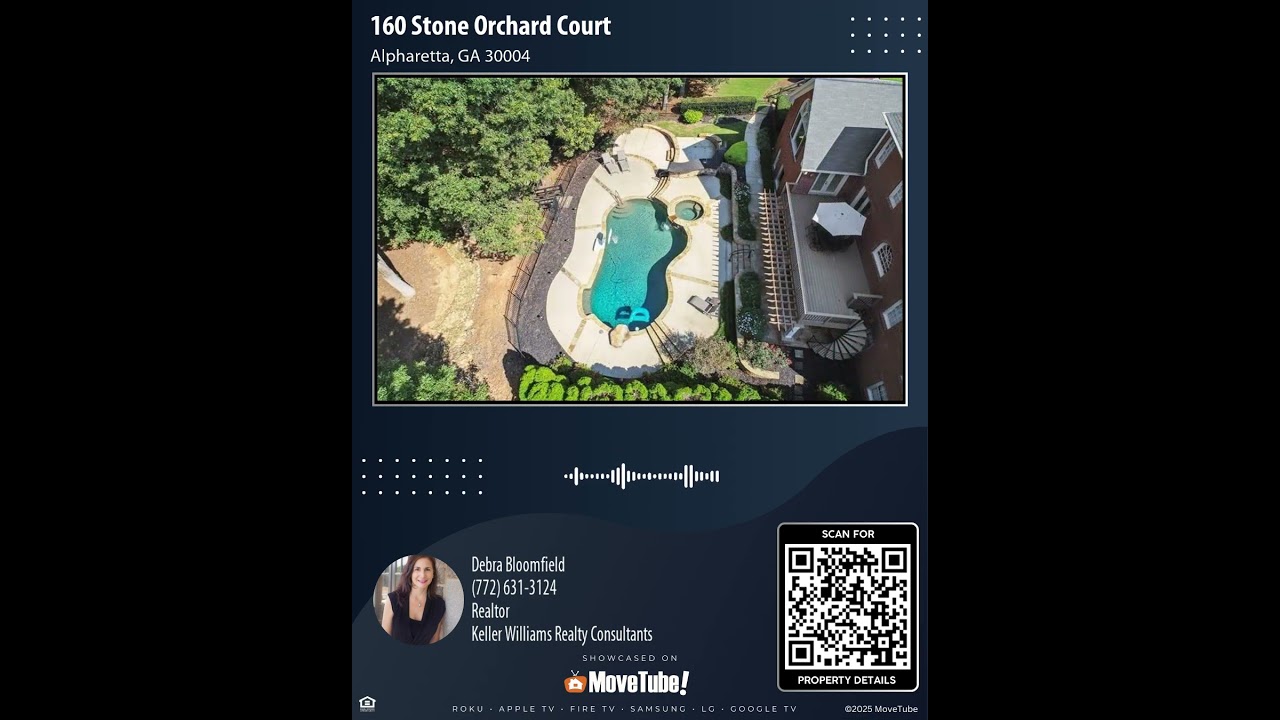 Nestled on a 1.2-acre cul-de-sac lot at 1 6 0 Stone Orchard Court in Alpharetta, this 4-sided brick home boasts a 3-car garage and exudes charm from the moment you step onto the rocking-chair front porch. The entry welcomes you to a lovely office with new French doors and a spacious dining room. Revel in an open floor plan with refinished hardwood floors, a two-story family room with a stunning stone fireplace, and custom built-ins, perfect for entertaining. The gourmet kitchen features double ovens, two French door refrigerators, a five-burner gas cooktop, and a grand island. The main floor guest suite offers privacy and luxury with a newly remodeled bath. Upstairs, the oversized primary suite with three walk-in closets and an exquisite bath awaits. Enjoy four additional bedrooms, each with private baths and walk-in closets. Call Debra Bloomfield at (772) 631-3124 to book a showing!