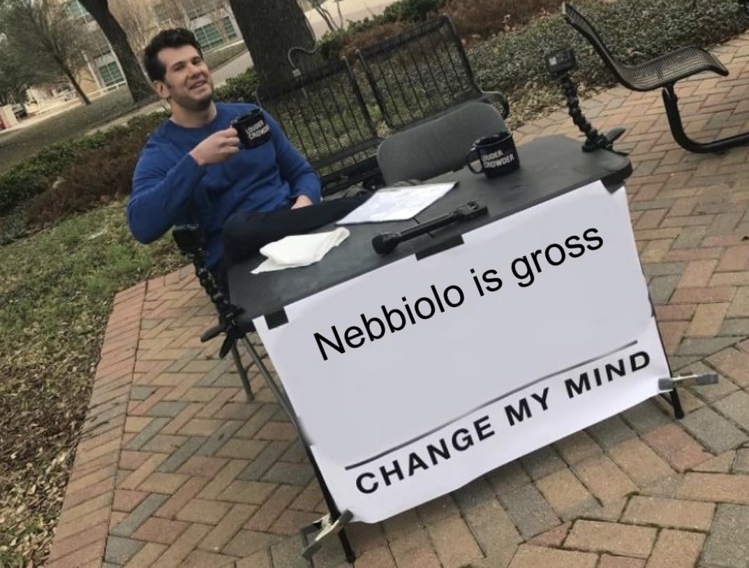 I’m not changing your mind. I like Nebbiolo cause it tastes like dirt and sandpaper tea. More for me to drink.