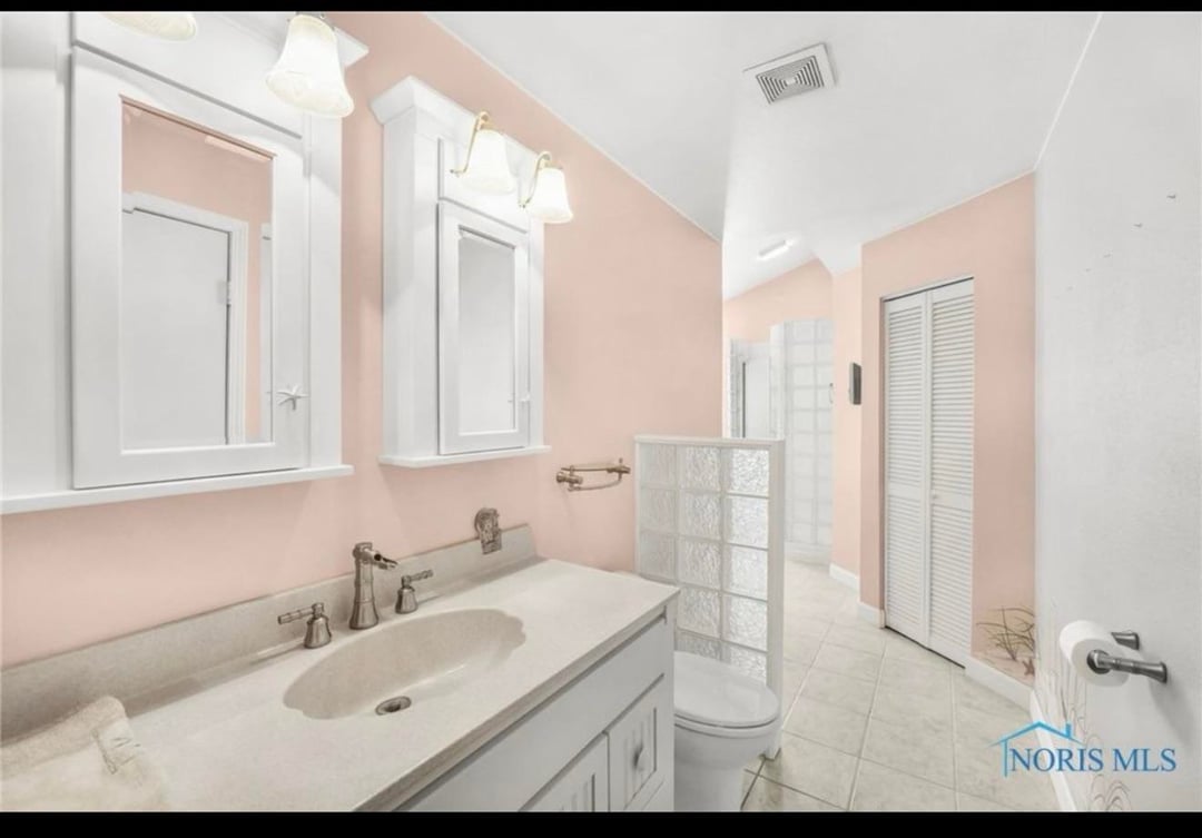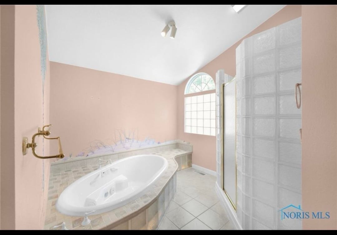 New house has very nice bathroom but not sure what to do to change it up on a budget since it has the ice block glass and also shell shaped sink and subtle shells in tiles around tub. Trying to avoid beach theme. (Previous owners really loved the beach as there are TWO palm tree murals in bathroom and bedroom.