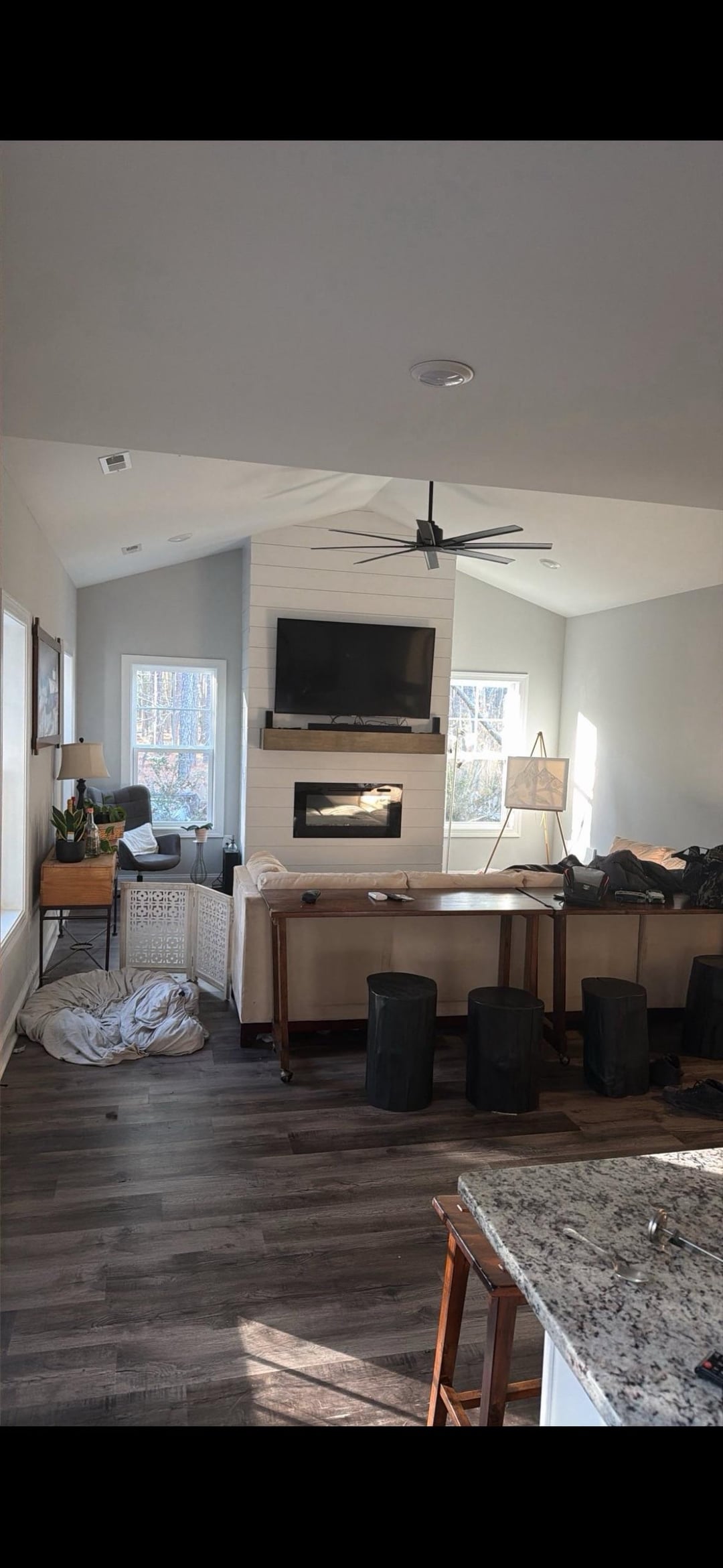 hey!! husband and i recently bought a friends home and i haven’t been there yet (he has) but from photos I can tell its millennial washed. We are talking about dumping a bunch of money into it but at the same time aren’t sure as it won’t be a forever home. Any suggestions on wall color to help make me not despise the floors? I attached photos with different lightening