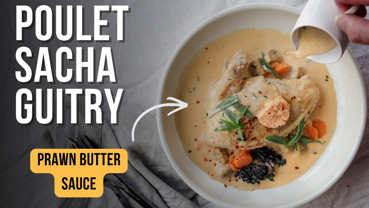 How to make prawn compound butter and use it to cook Poulet Sacha Guitry — a classic French chicken dish with cream, Madeira and morels.