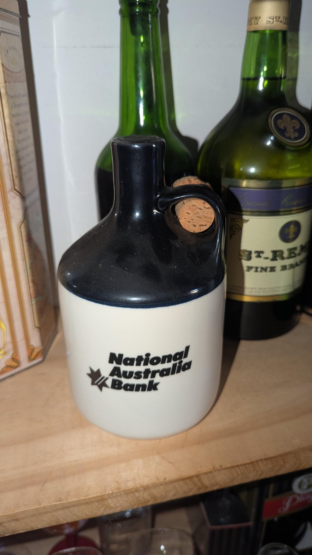 Bottle of sealed Wine labeled National Australia Bank by Mysterious_Orchid470 Wine 2 Comments Volleyballmom23 2 hours ago It was a growler of wine. T0N372 2 hours ago Must have been presents for employees or customers. Not much I assume.Write A CommentYou must be logged in to post a comment.