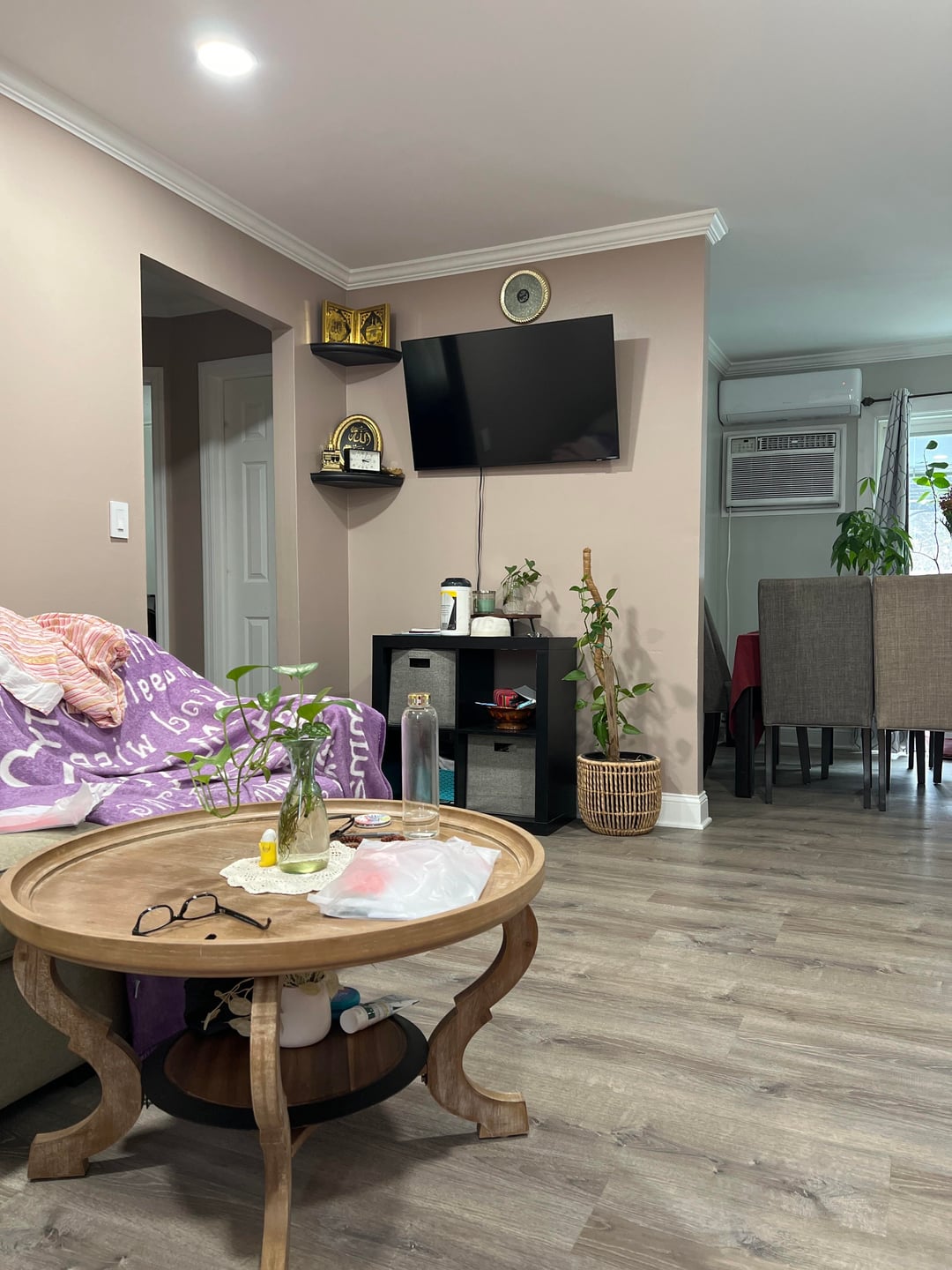 Hi! So our living room isn’t super huge and we have this one wall on the smaller end with our TV on it (I know it’s too high).