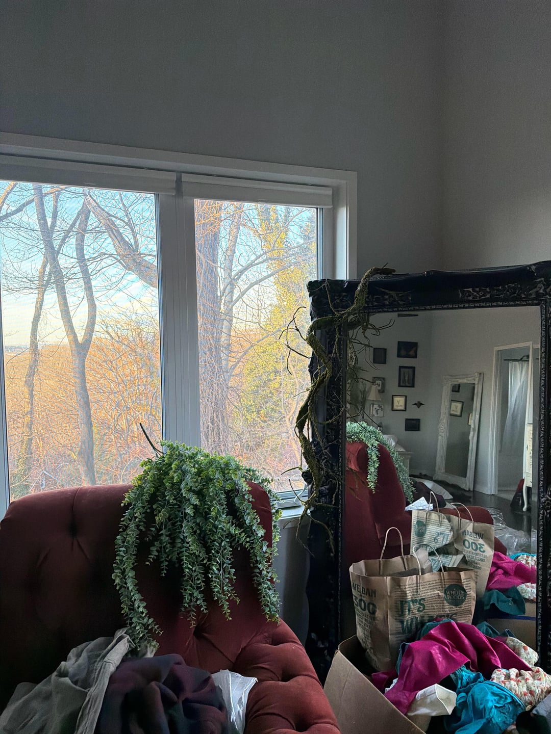 The last three photos are for reference of what else I’ve bought to decorate with. A bunch of plants, really. I plan to make a hanging arrangement from my tall armpit over the side. I also added that narnia vine to my mirror.