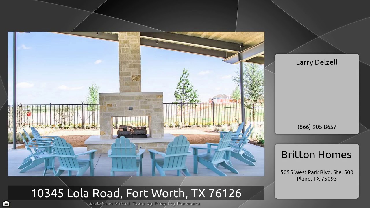The Virtual Tour for the property at 10345 Lola Road, Fort Worth, TX 76126 listed for $428,900: Other homes for sale by Larry Delzell of Britton Homes: PERRY HOMES NEW CONSTRUCTION! Game room with French doors and formal dining room with ceramic tile floors off extended entry. Family room with ceramic tile floor, wall of windows and wood mantel fireplace opens to kitchen and morning area. Kitchen hosts inviting island with built-in seating space, abundant counter space, stainless steel appliances and 42 inch cabinets . Master suite features dual vanity, garden tub, separate glass-enclosed …