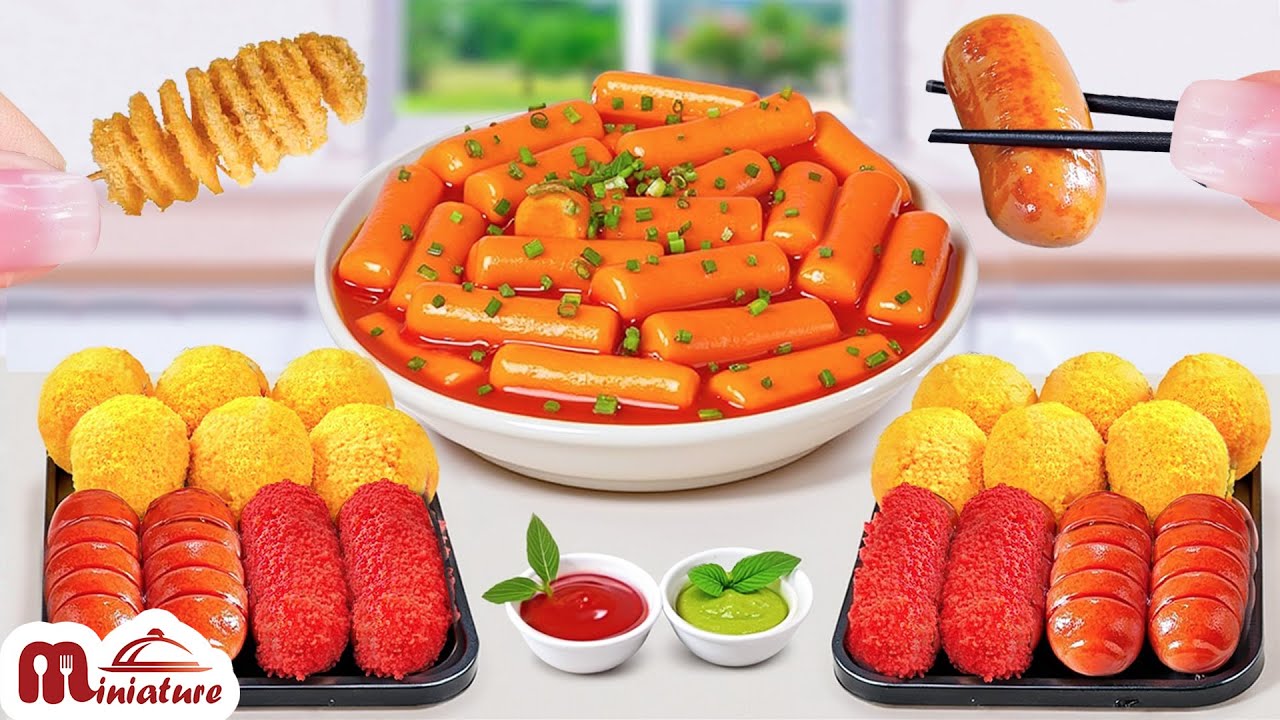 🥰 Best Of Mini Spicy Tteokbokki With Corn Dogs & French Fries Recipe | ASMR Cooking Mini Food