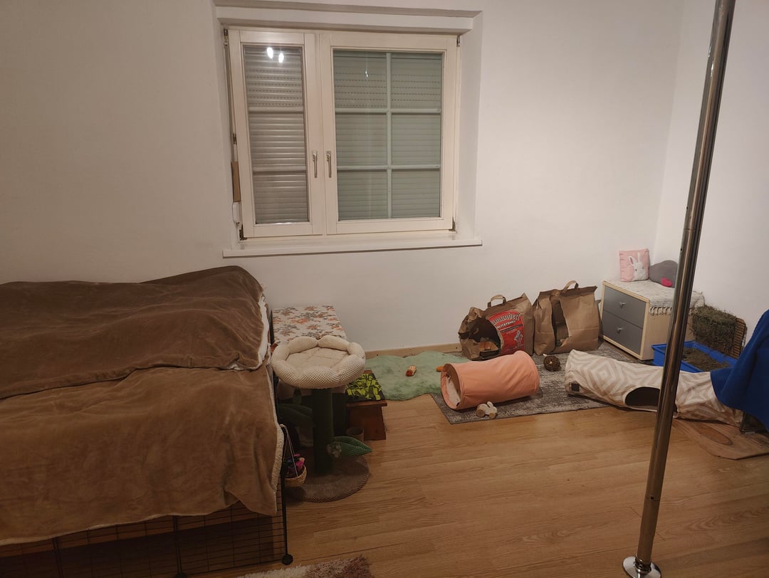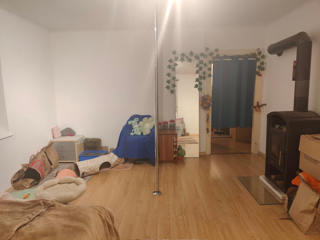 (Please ignore the multiple bags of hay, one of our bunnies weren't eating as she should, so we have multiple options for them here and there so she sees food around her everywhere lol)