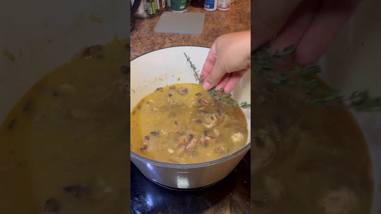 Heat oil and butter over medium heat. Add onions and a pinch of salt. Cook on low for 30-40 minutes until the onions are caramelized. Make sure to keep stirring them every few minutes. Add in mushrooms and cook for 5 minutes. Add in minced garlic for 1 minute. Add in wine and simmer for 5 minutes until it’s cooked down. Add in broth, water and thyme. Bring to a boil, add in pasta and cook uncovered for 12-15 minutes. Once pasta is done add in Worcestershire and balsamic vinegar. Put heat on low and add in heavy cream and cheese. Mix until the cheese is completely mixed in. Season salt and pepper. Garnish with Parmesan and toasted breadcrumbs.