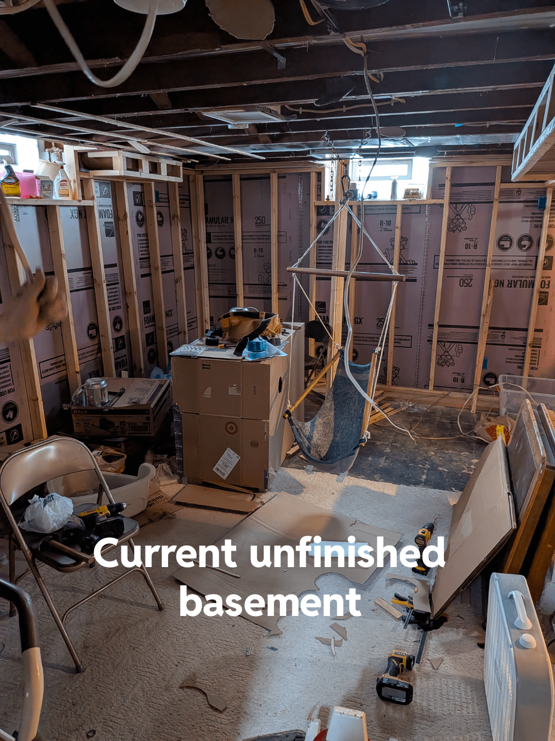 My husband and I are renovating our basement into a family room/ play room. There are only two small windows and the ceilings are low with lots of weird vents and things we'll need to sheetrock around.