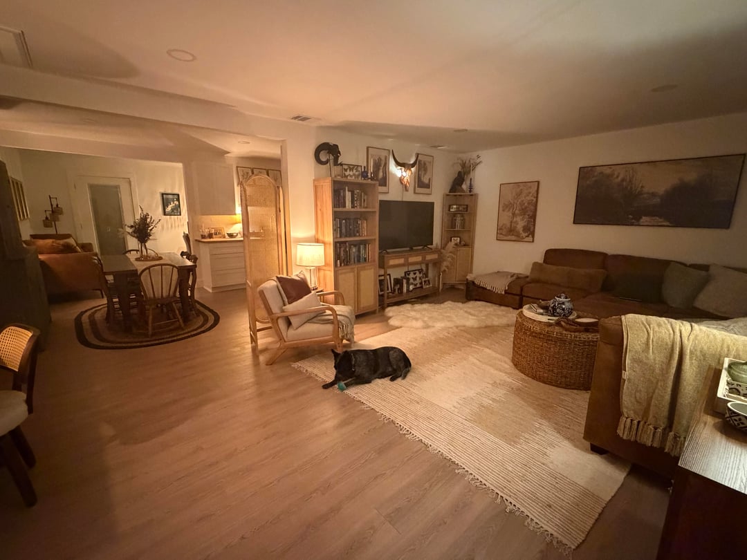 The room is fine. I want to scritch your dog. Your dog is a good dog!