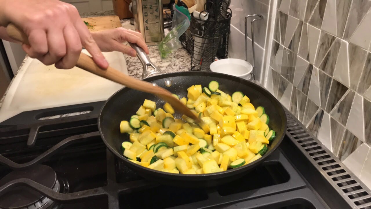 Summer Squash with Persillade—a delicious summertime vegetable dish with zucchini and yellow summer squash and the parsley and garlic combination called “persillade” in French. Make this “one pan” dish for your family and watch it disappear! Courtesy of Stella Lucente, LLC for Conversational Italian for Travelers books, demonstrated by author and blogger Kathryn Occhipinti.